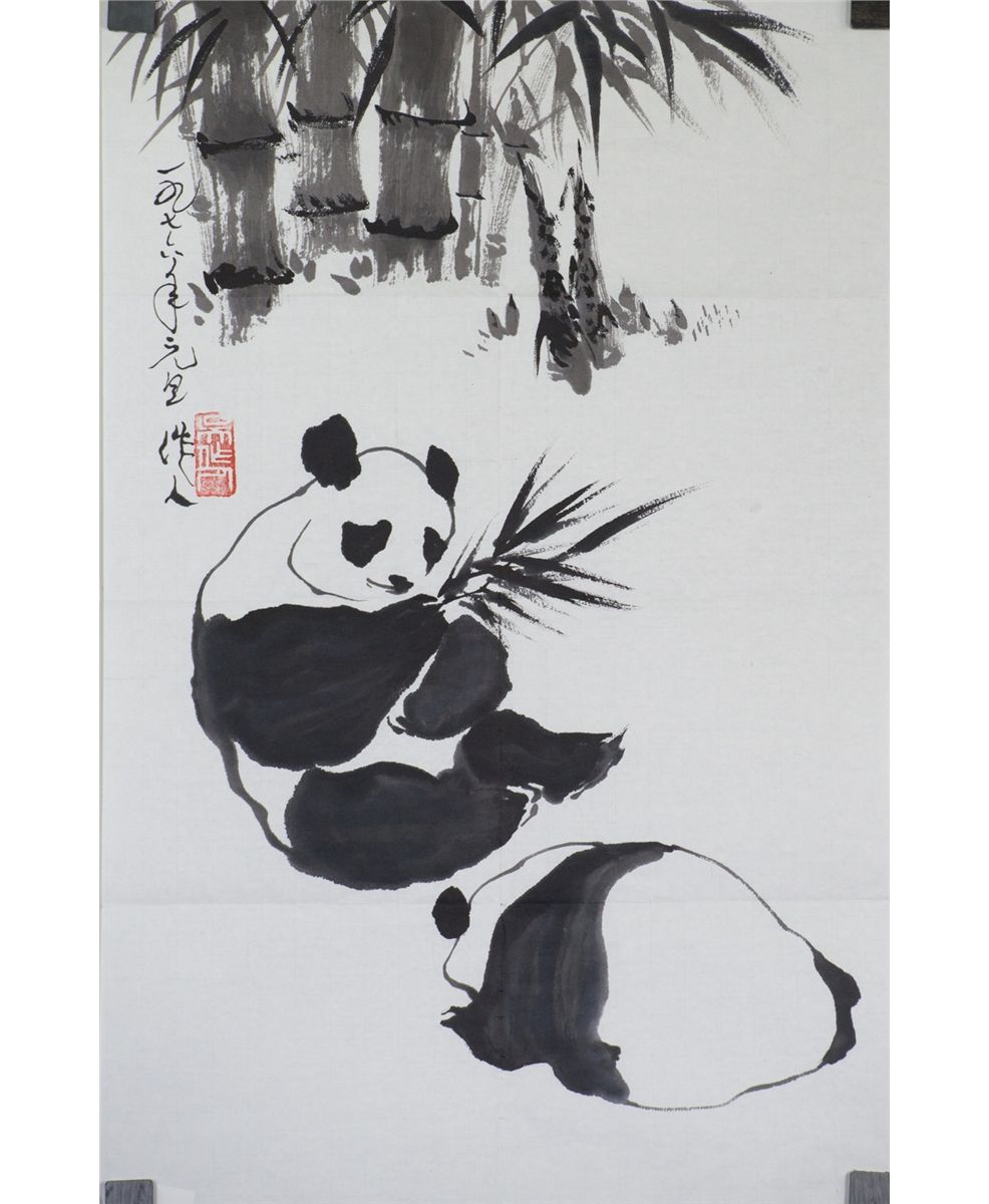 Two pandas eating bamboo; Chinese ink on paper; signed Wu Zuo Ren (1908-1997) and inscribed with one artist seal; 42.5 cm x 41 cm