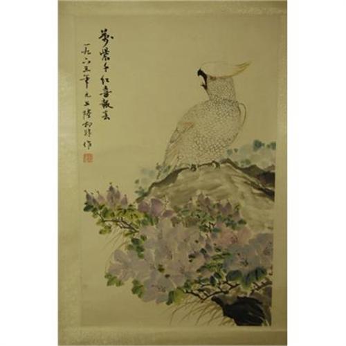 Attributed to Lu Yifei ( Chinese 1908-1997 ). Decorated with bird and floral. Good condition. 26.5" x 17" painting itself.