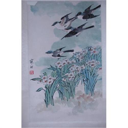 Attributed to Jiang Hanting ( Chinese 1904-1963 ). Birds and Floral.27" x 16.75" painting itself.