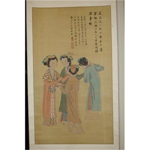 Chinese Ink on paper Scroll Painting. Decorate as women figural. good condition. 36" x 20.5" painting itself.