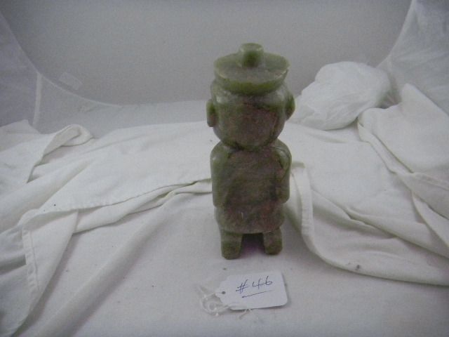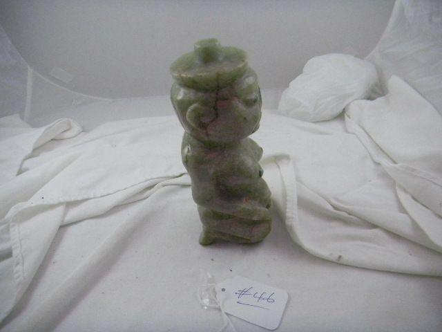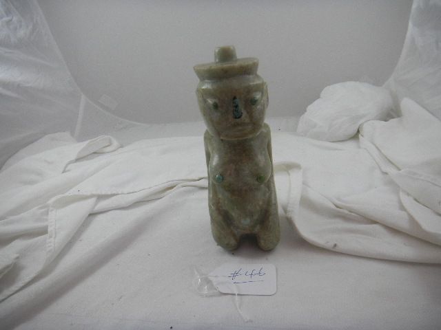 Chinese Inlay Figure. This jadeite figure is adorned with turquoise and measures- nine inches by three inches . Condition is minor chip on toe. Shipping $15.00