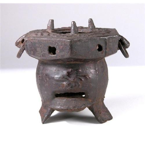 A small Iron-casting burner with original lacquer from Shanxi Province, North China.