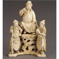 Chinese Ivory Group of a Guandi and Two Attendants