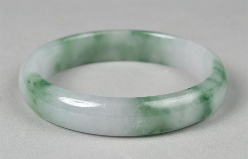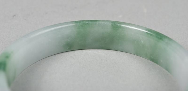 Light green jade with dark and green apple inclusions. 2.75" Dia., 20th century.