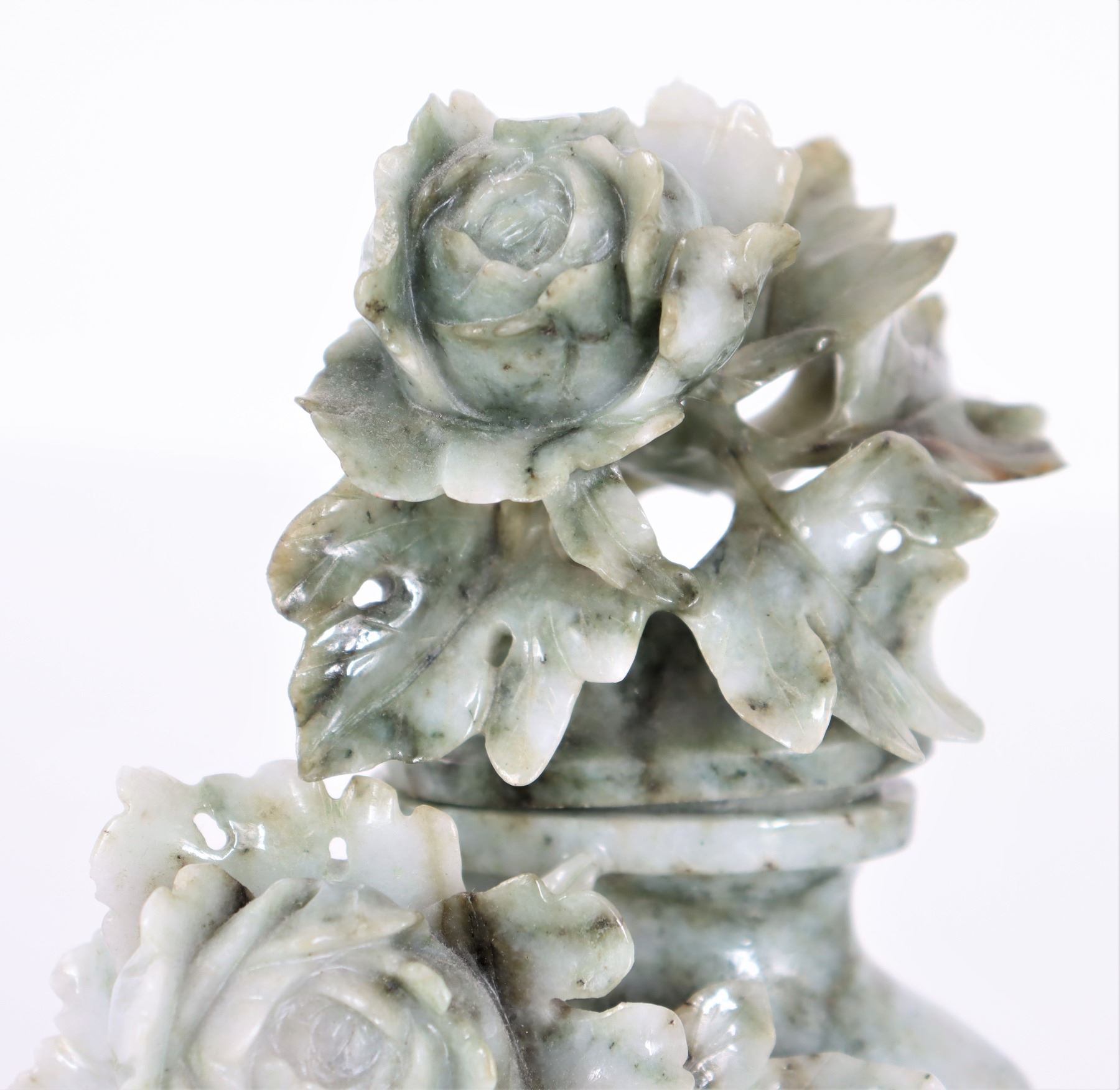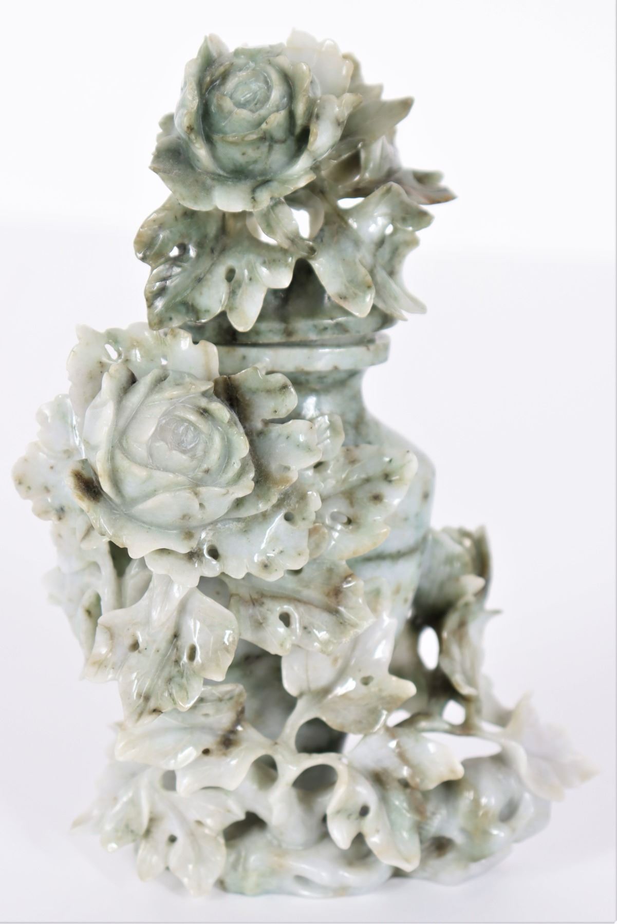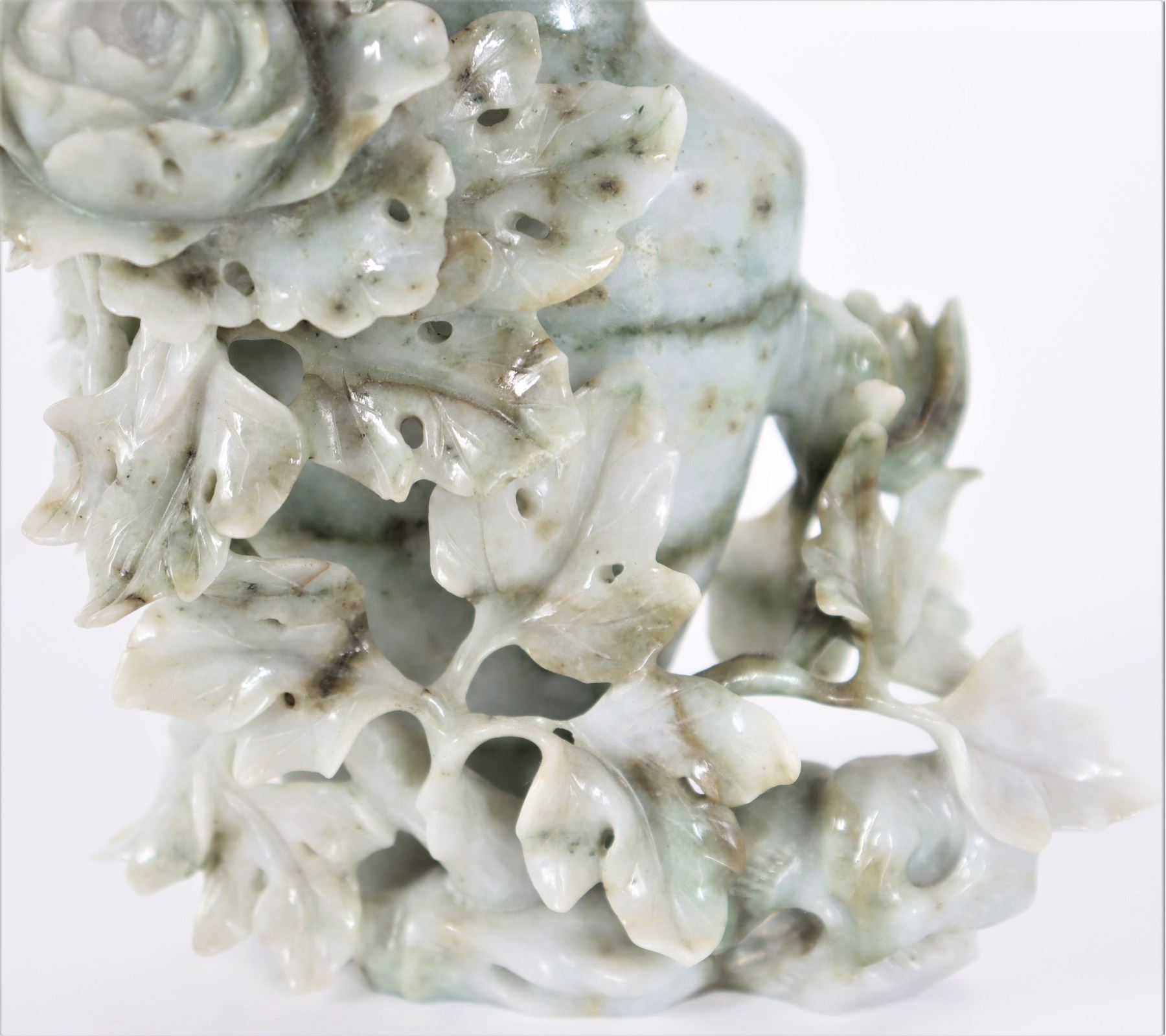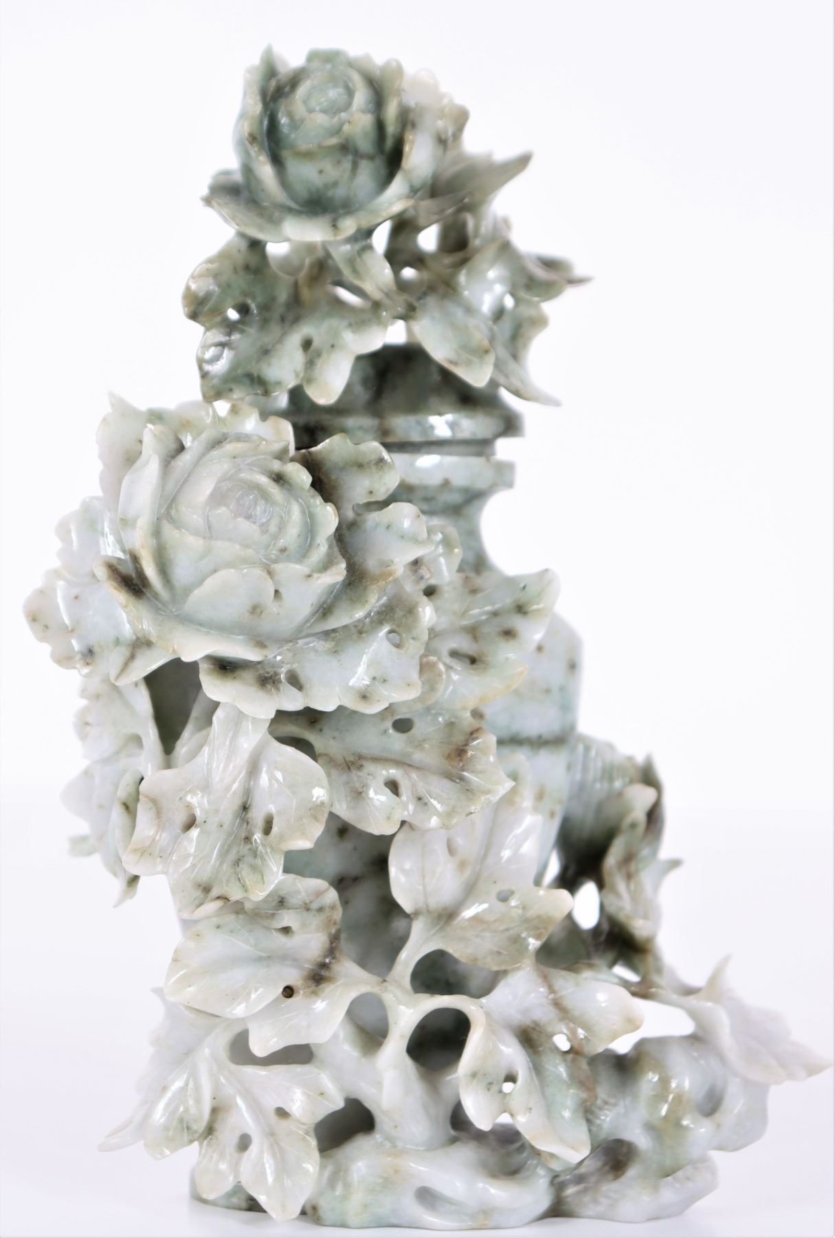 Chinese finely carved vase with roses and foliage. Delicate, minor chips.