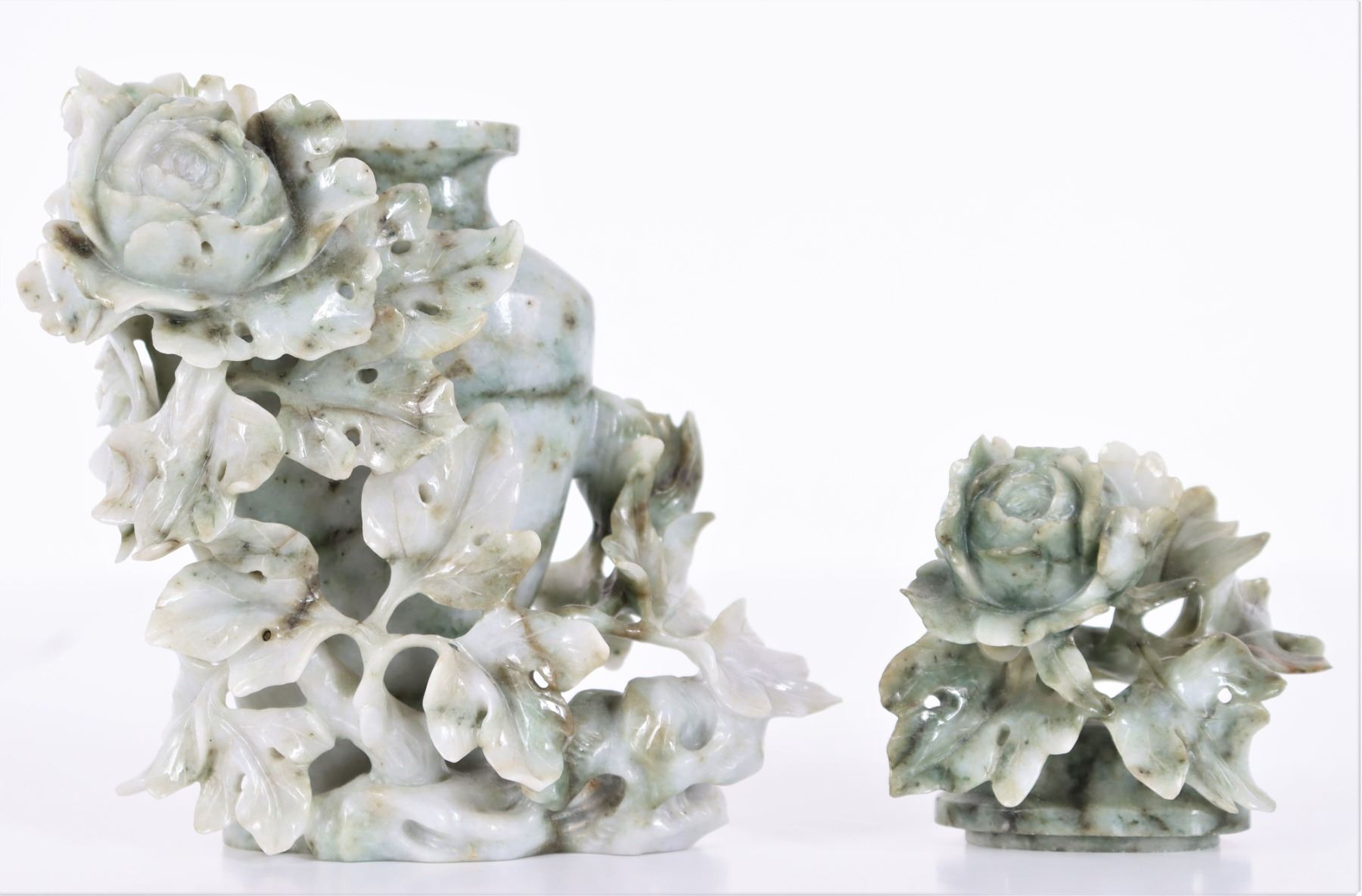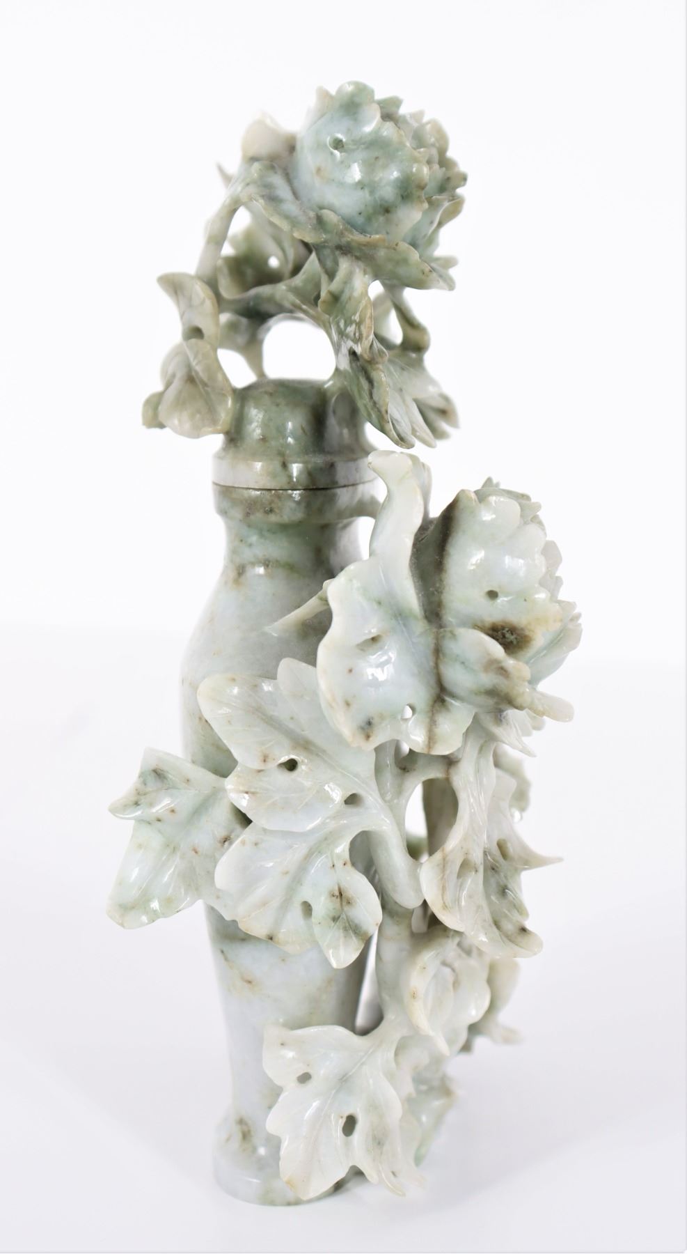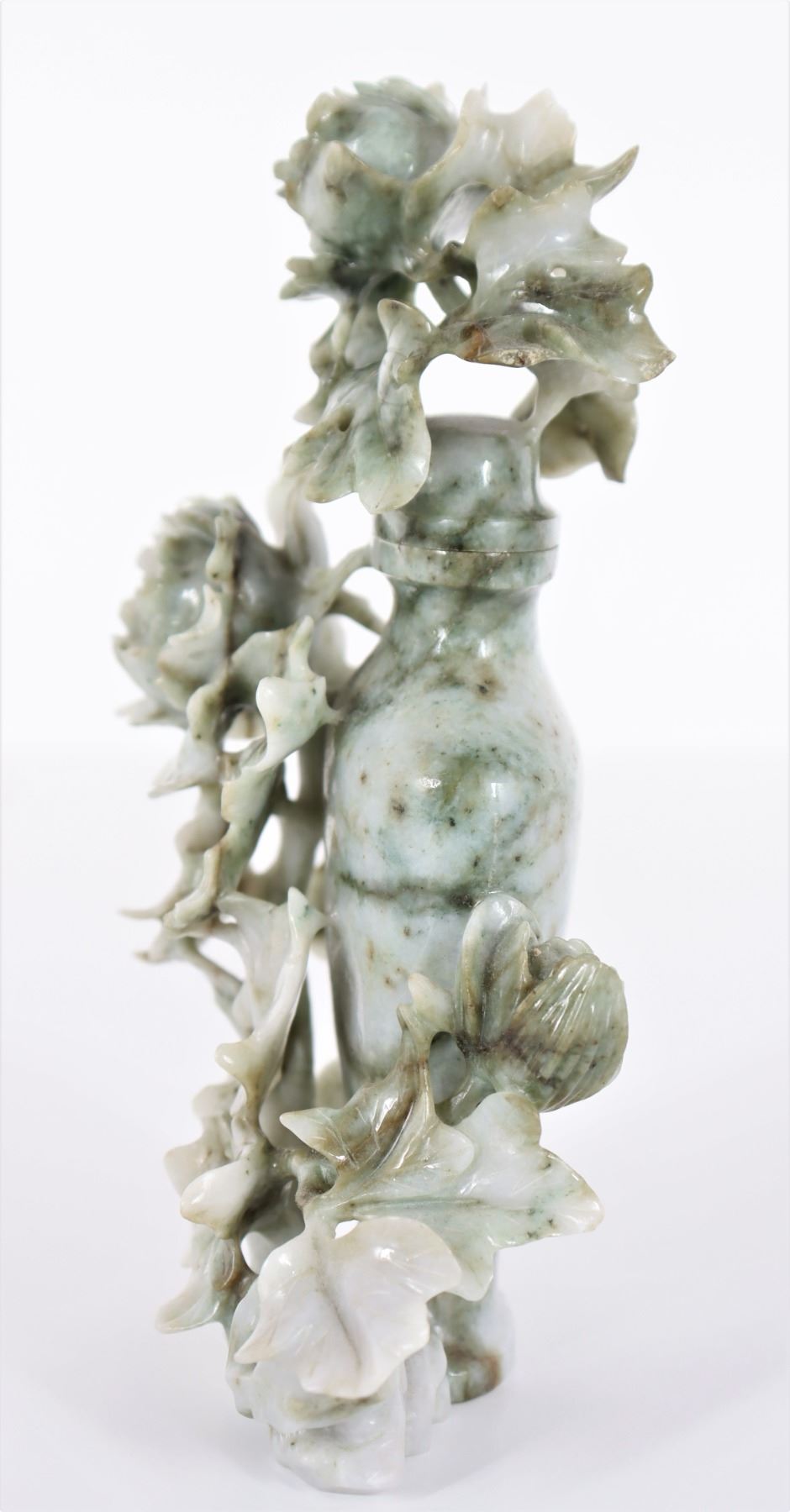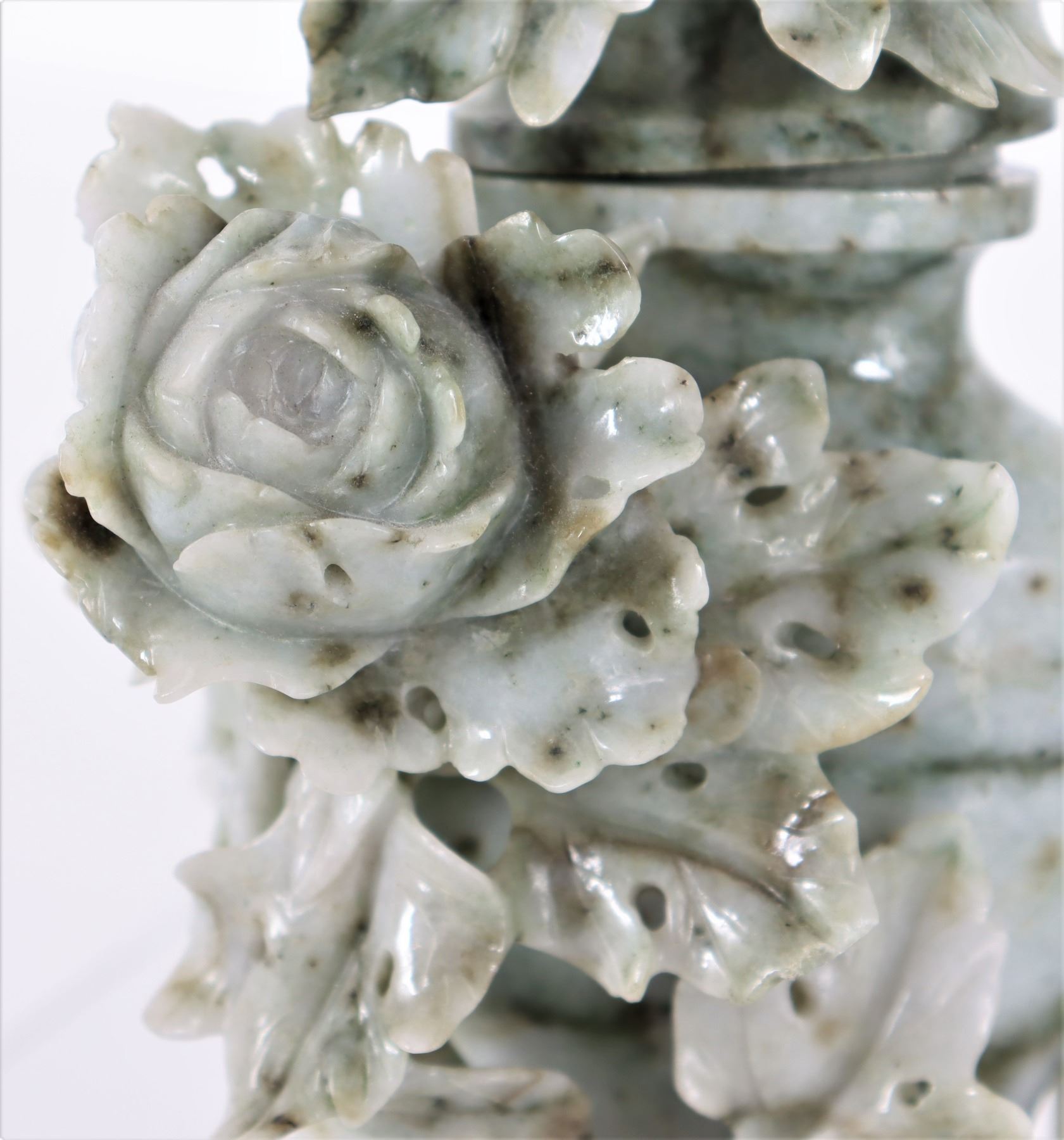 Chinese finely carved vase with roses and foliage. Delicate, minor chips.