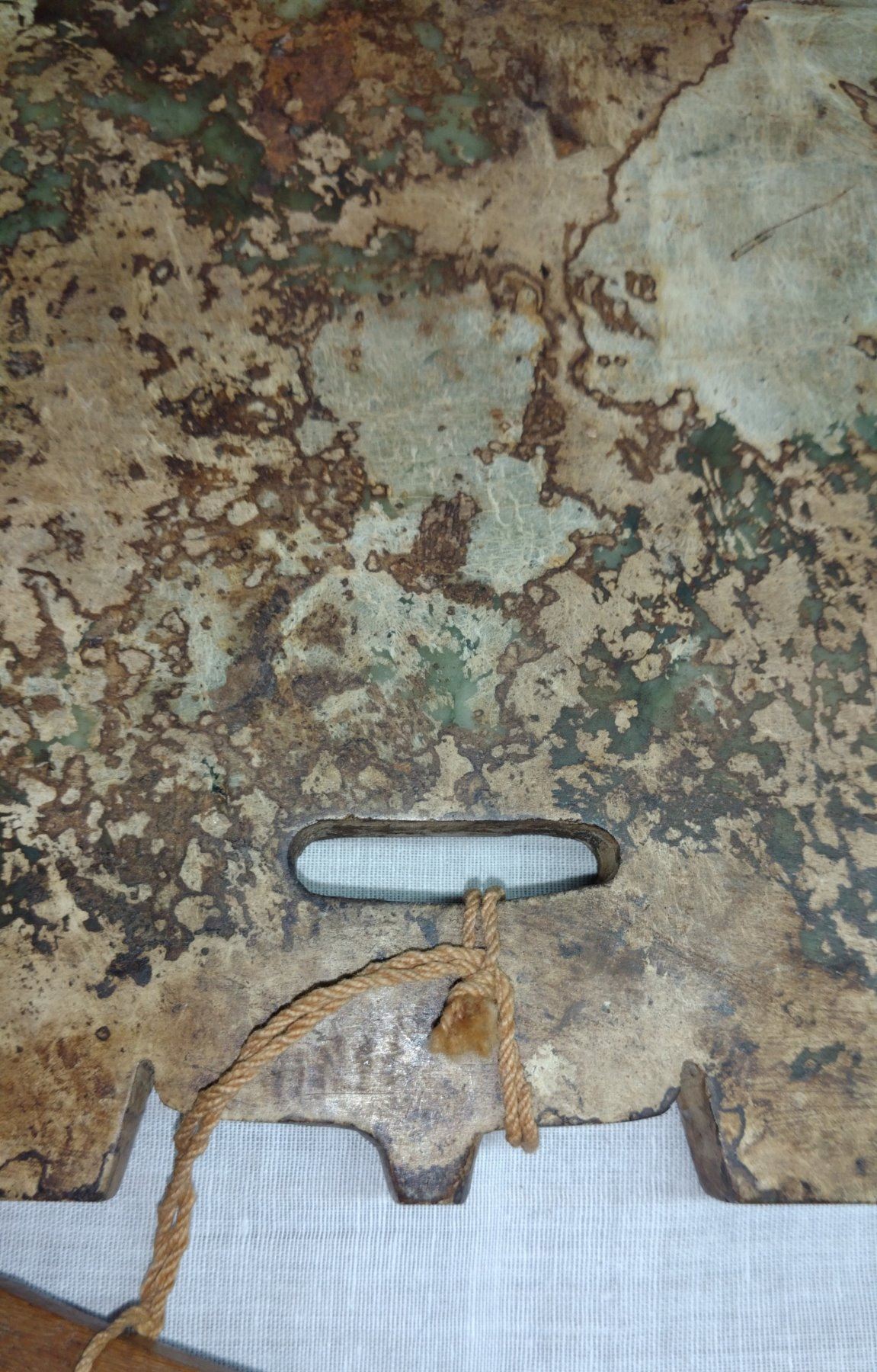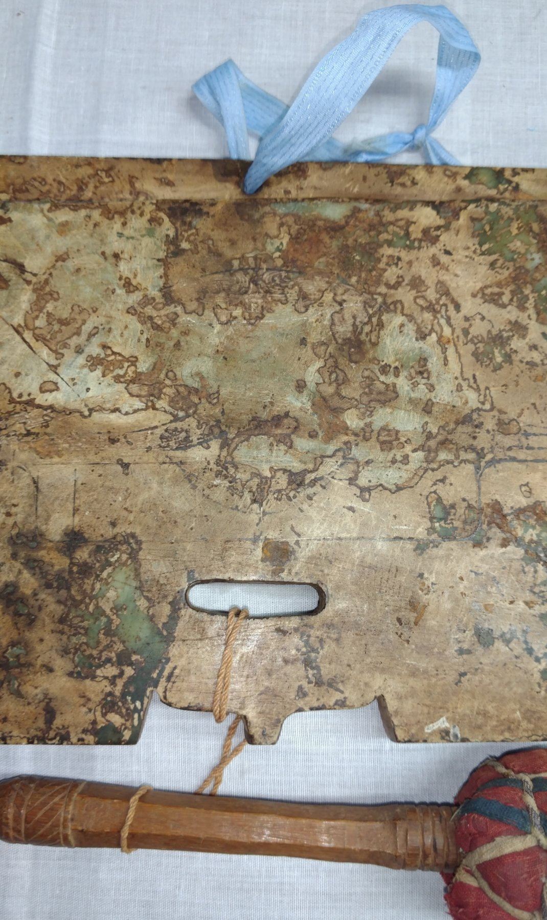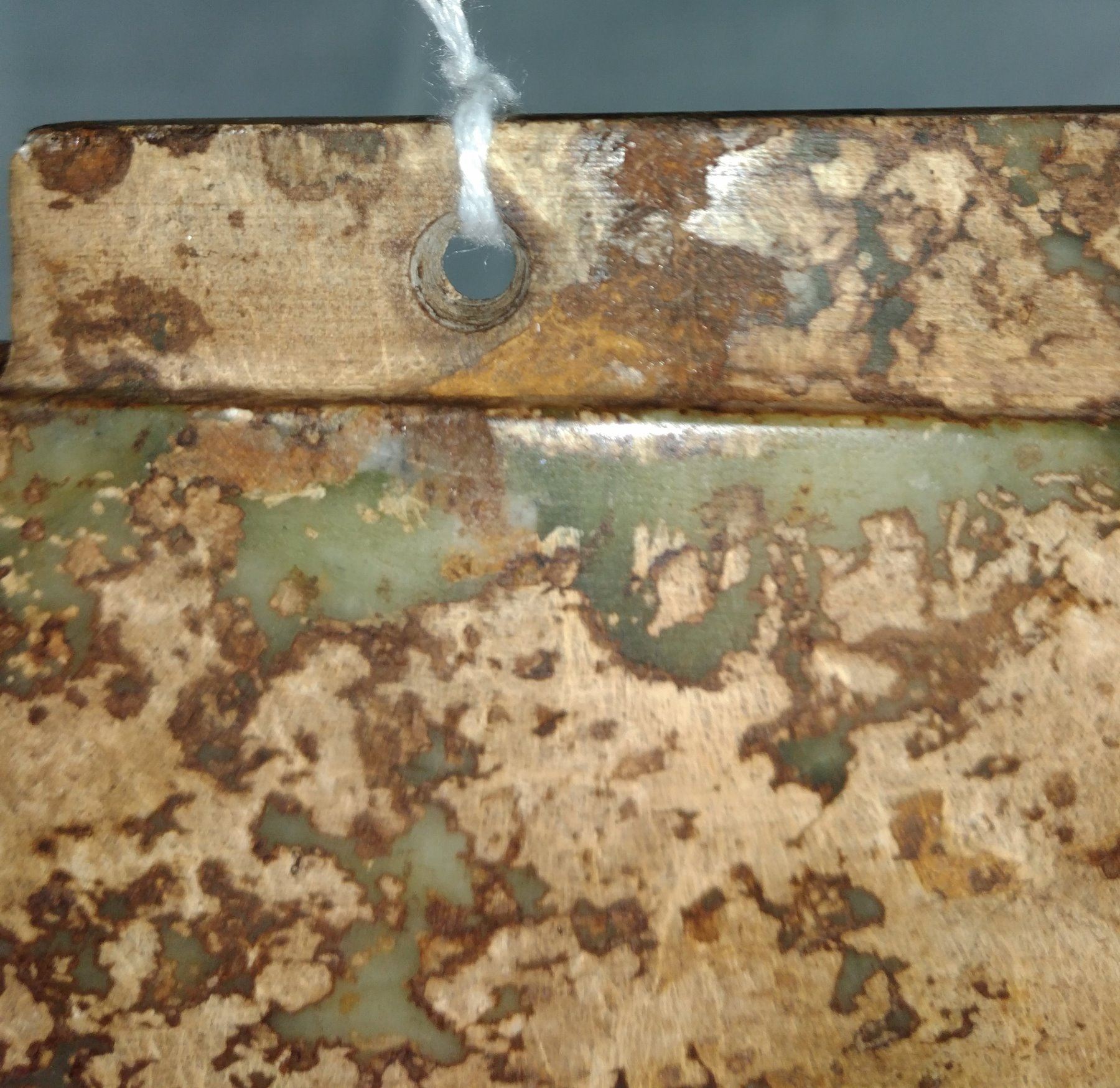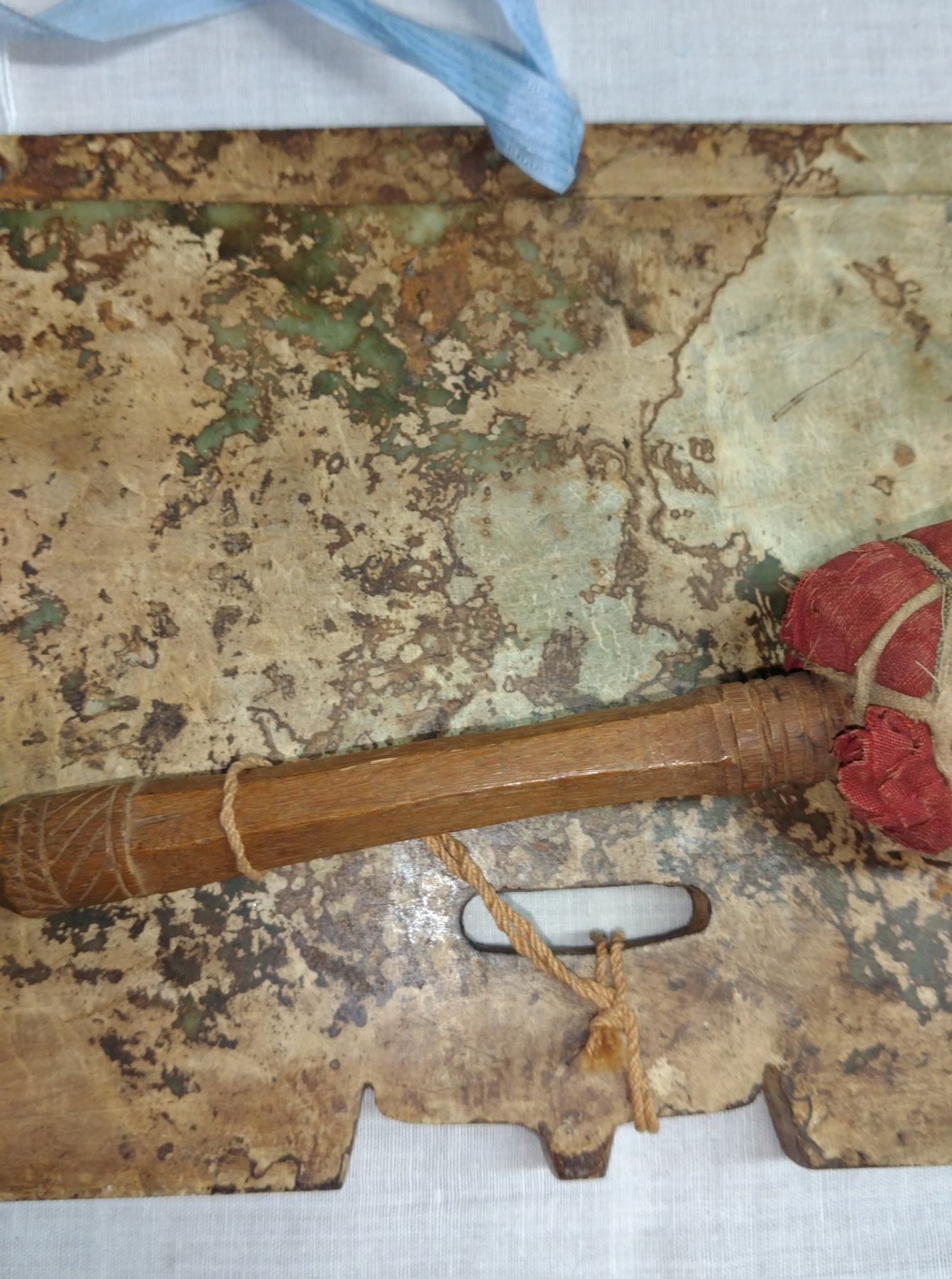 Chinese Jade Gong, Ming dynasty. Made of jade, wood and cloth, the item measures 14" x 7" x 1/2". China, 3 Gorges area. Has nice sound. Condition: Good, minor wear, see images. Shipping: $26.50 w/insurance and signature.
