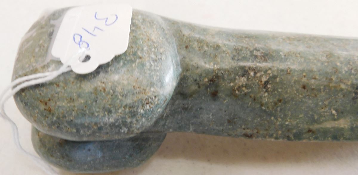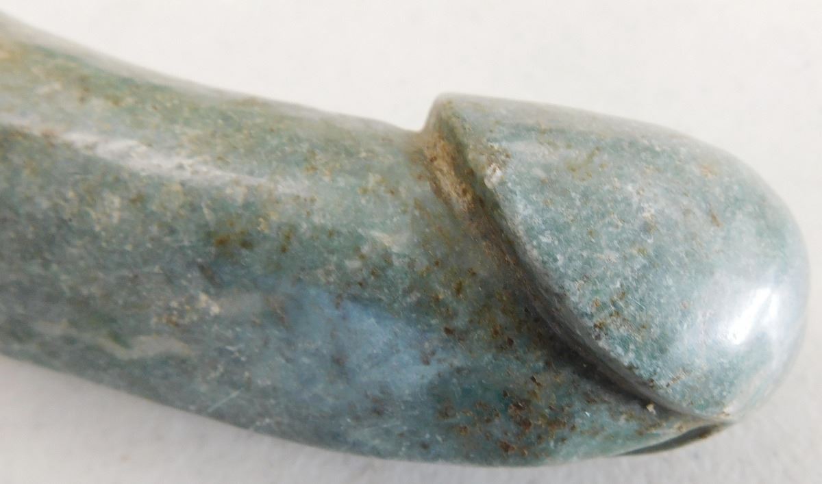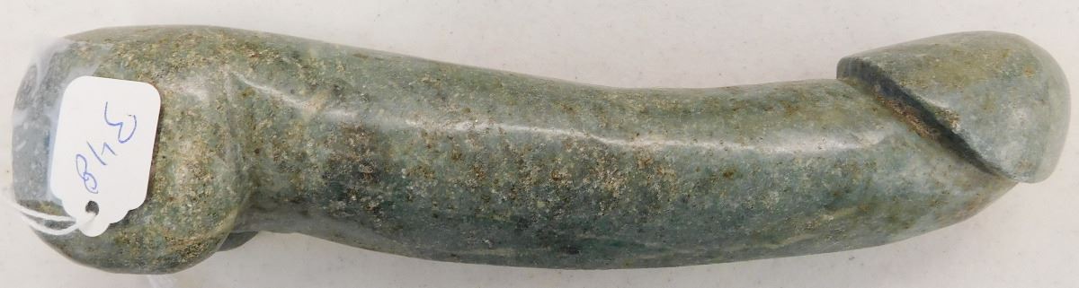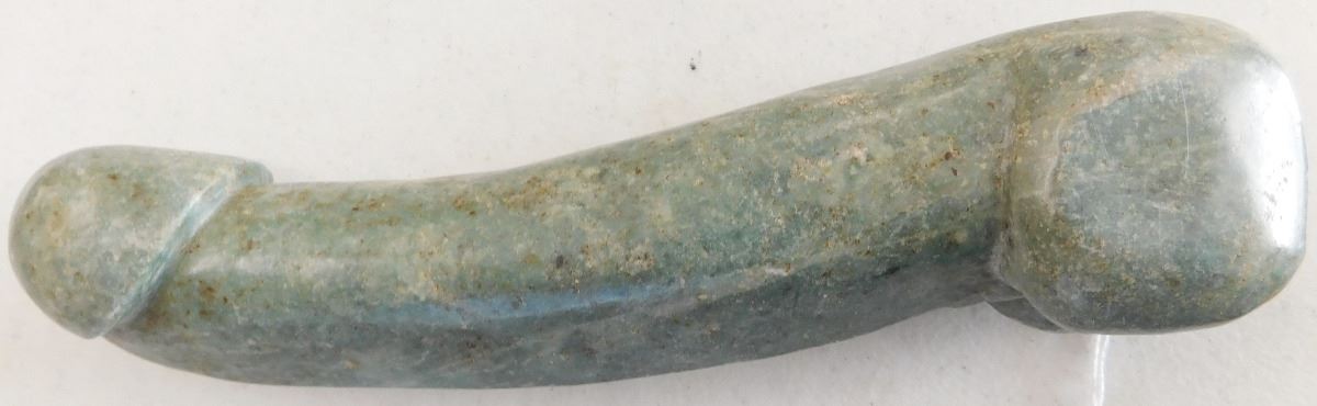 Chinese Jade Phallic Stone, Ming Dynasty item. Made of jade and measuring 8.75" x 2" x 1.5", this item is from China. Condition: Good, see images. Shipping: $20.00 w/insurance and signature.