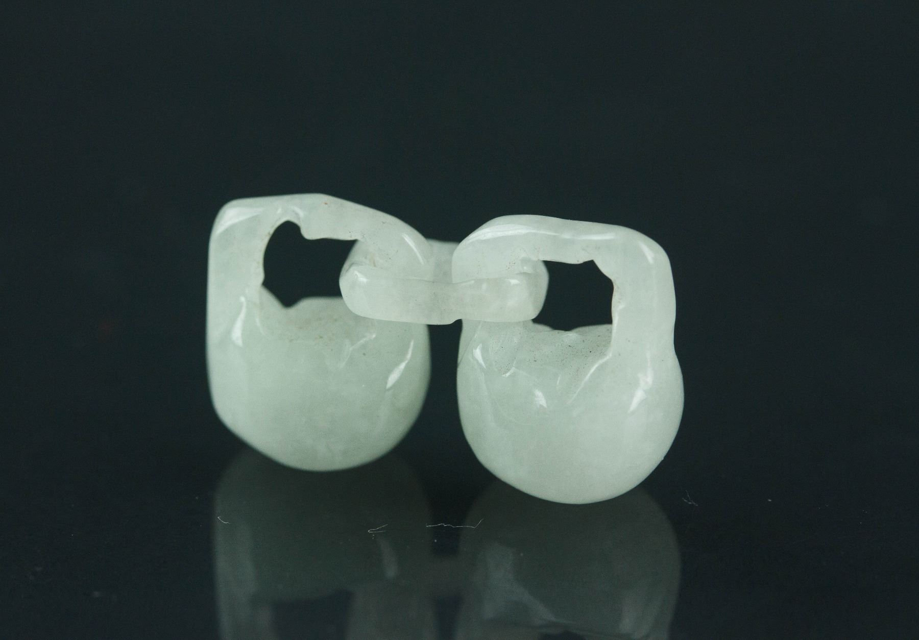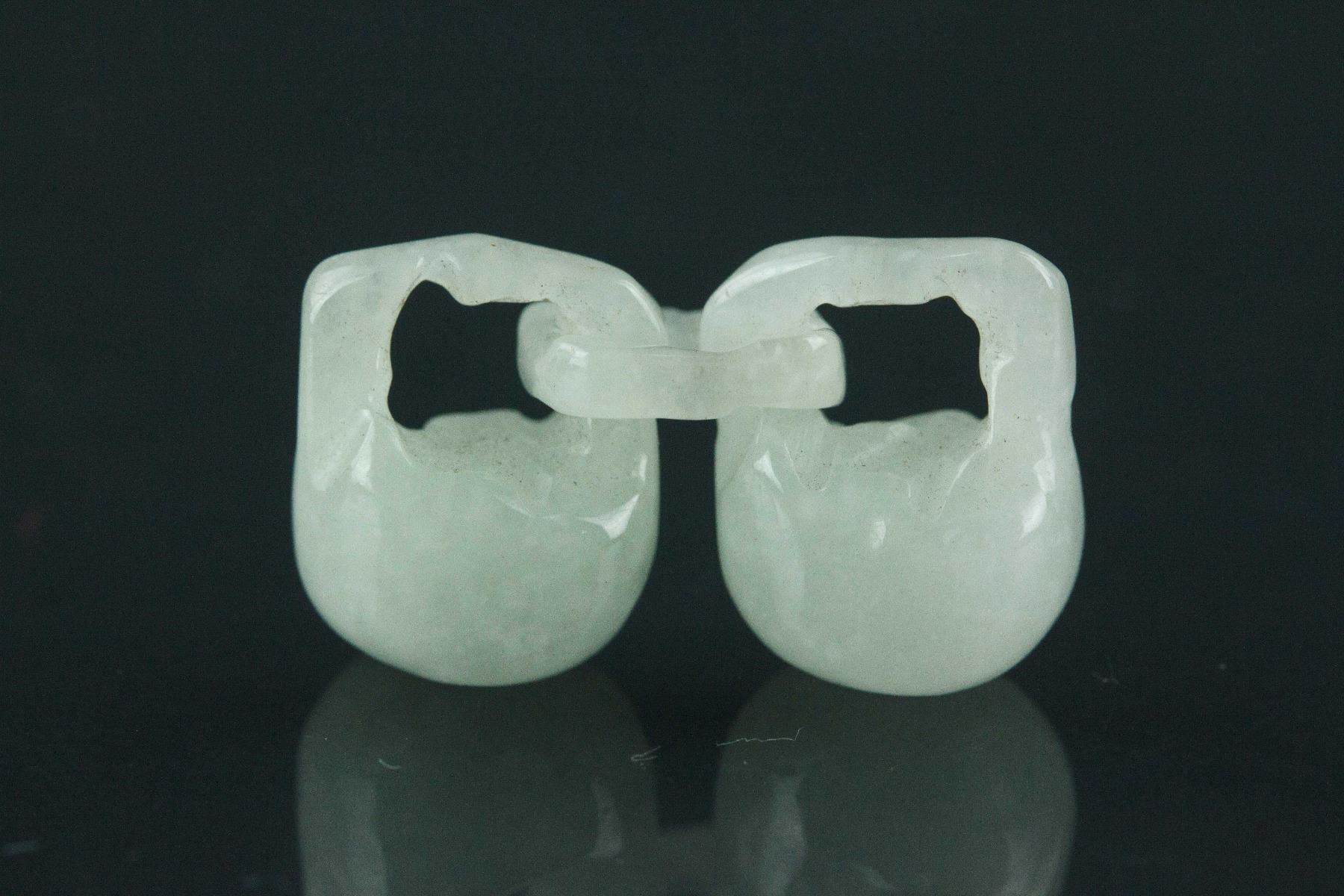 Chinese carved jadeite pendant; in shape of auspicious locks; the stone of pale green tone; H: 2 cm, 5 grams; Density: 3.29