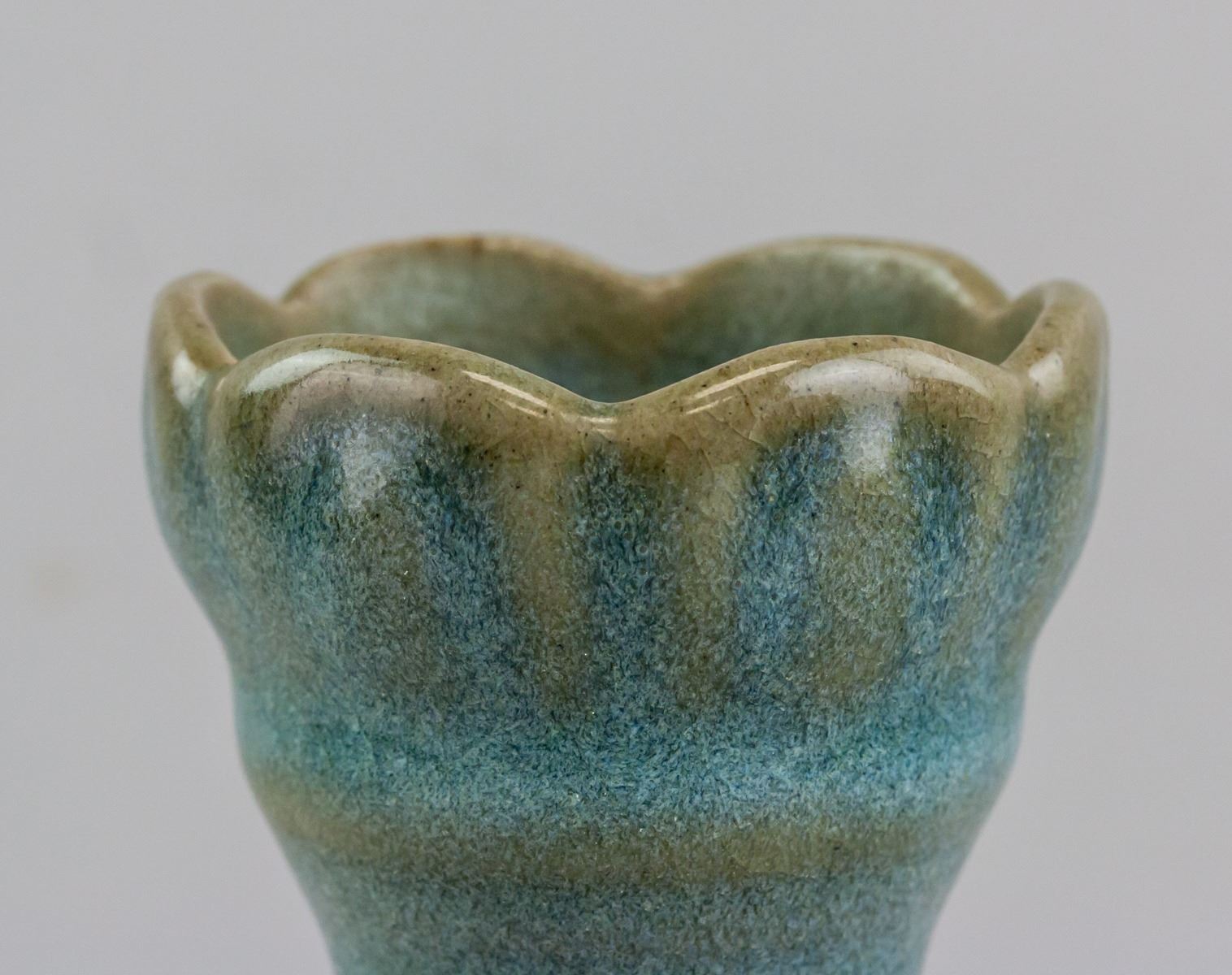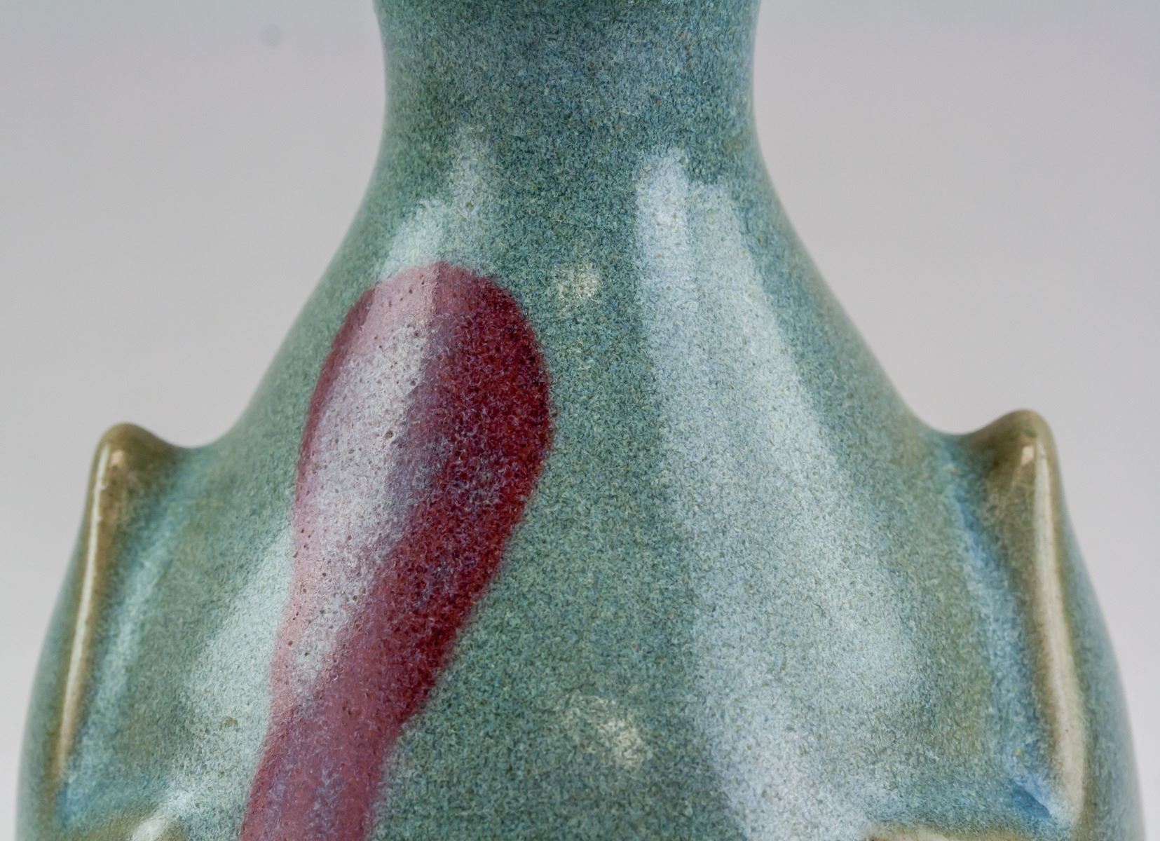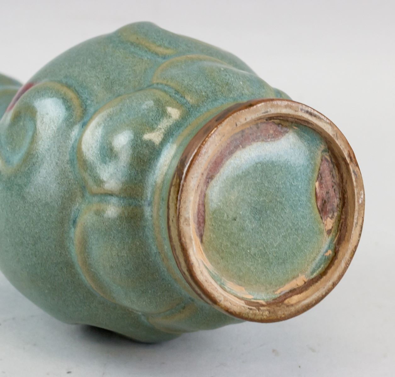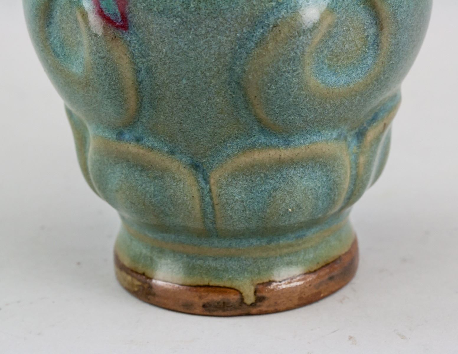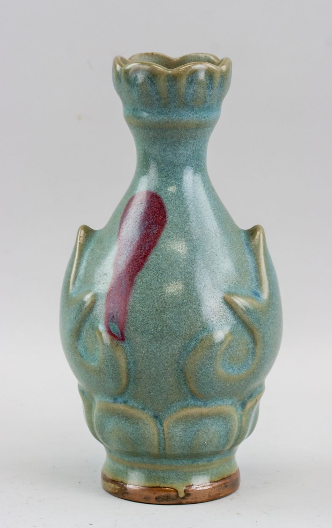 Chinese Juyao style porcelain vase. Of ovoid form body. Carved with lotus on surface. 23 x 12 cm, 791 grams
