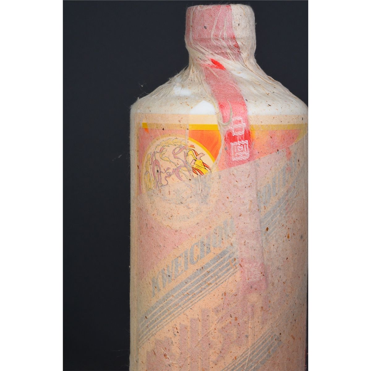 Vintage Kweichow Moutai (Maotai) grain wine 53% Alc/Vol; unopened with seal and wrapped in paper packaging, Circa 1980; H: 20 cm, 0.54L, 18.13 fl. oz