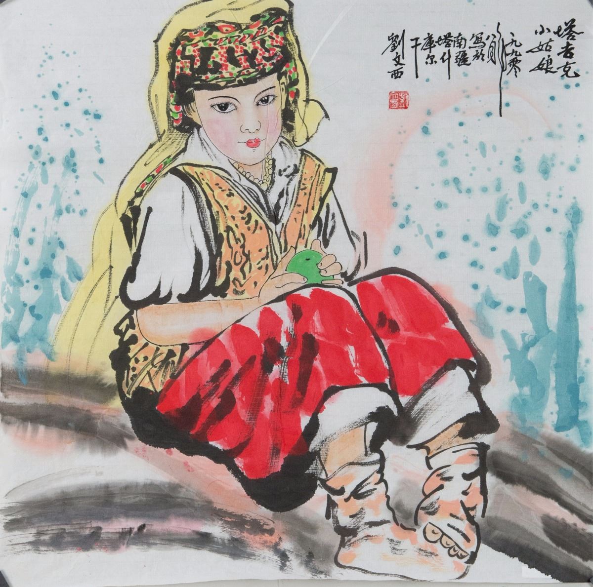 Lady portrait, Chinese ink and watercolour on paper, style of Liao Wen Xi. 68 cm x 66 cm. Provenance: T. Ng Collection Toronto.