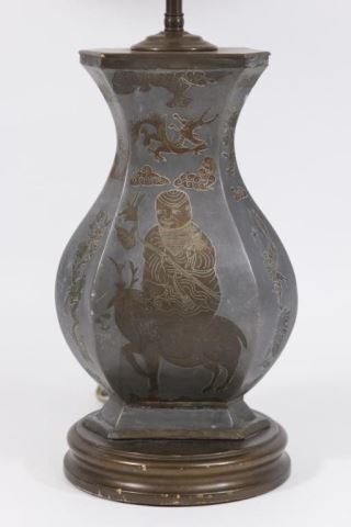 Mixed metal. Approx. 11 1/2" H without base, 13 1/2" H with base. (6026)
