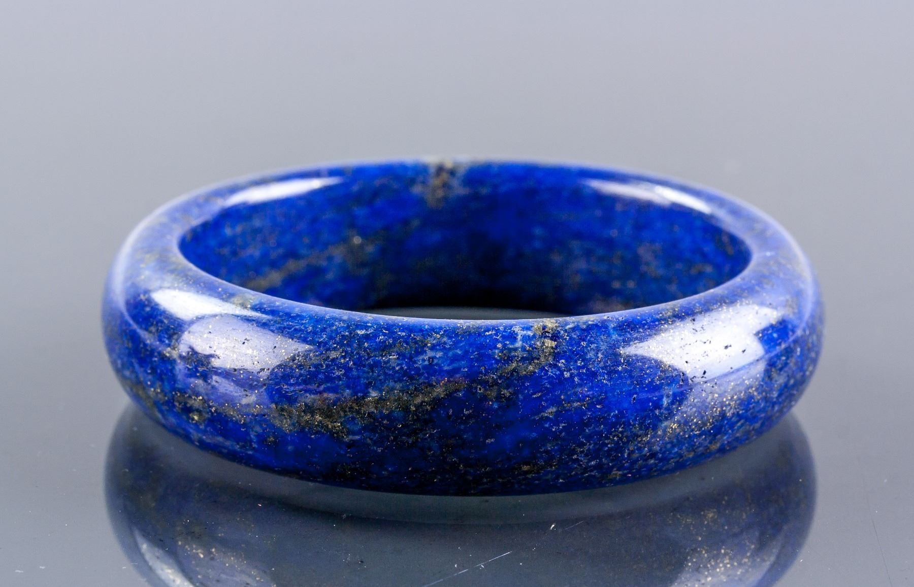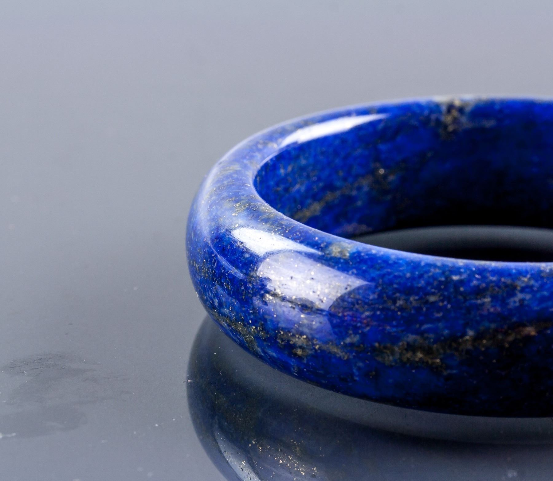 Chinese lapis carved bangle, of rounded outside and flatten inside, D: 77 mm, 85 grams