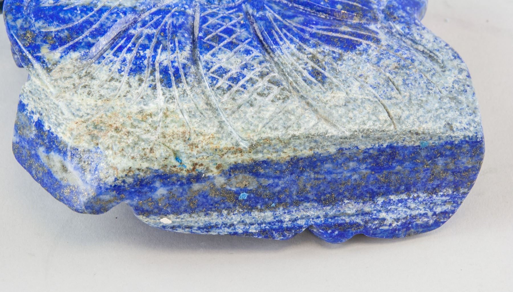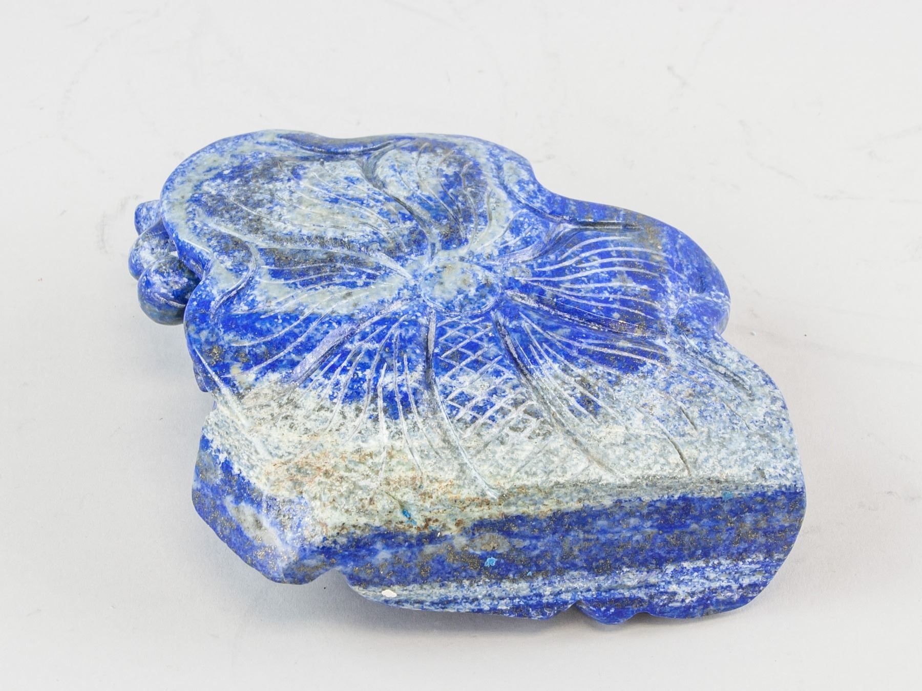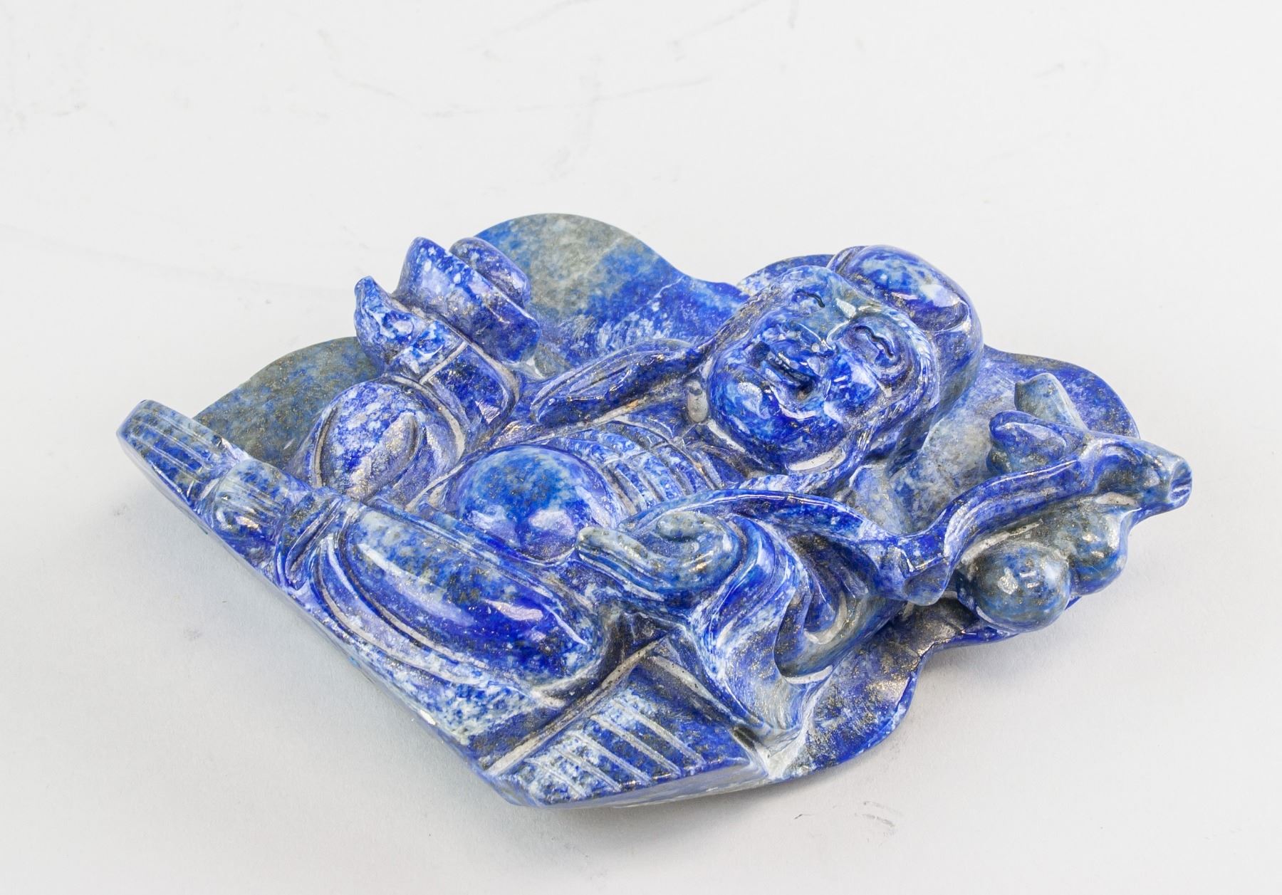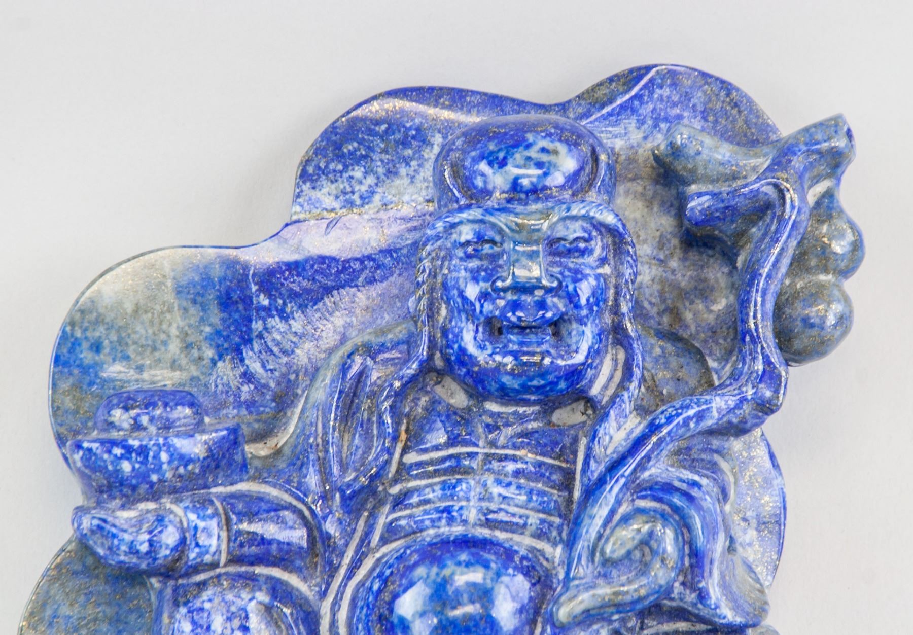 Chinese lapis carved statue, featuring in seated long-eyebrow lohan, 13.5 x 14 cm, 1034 grams