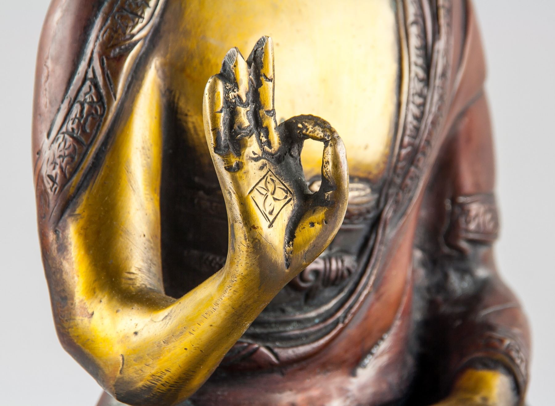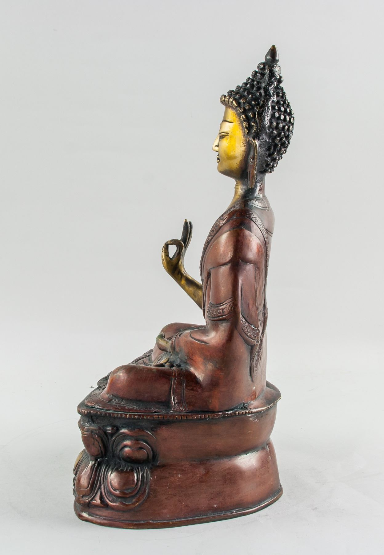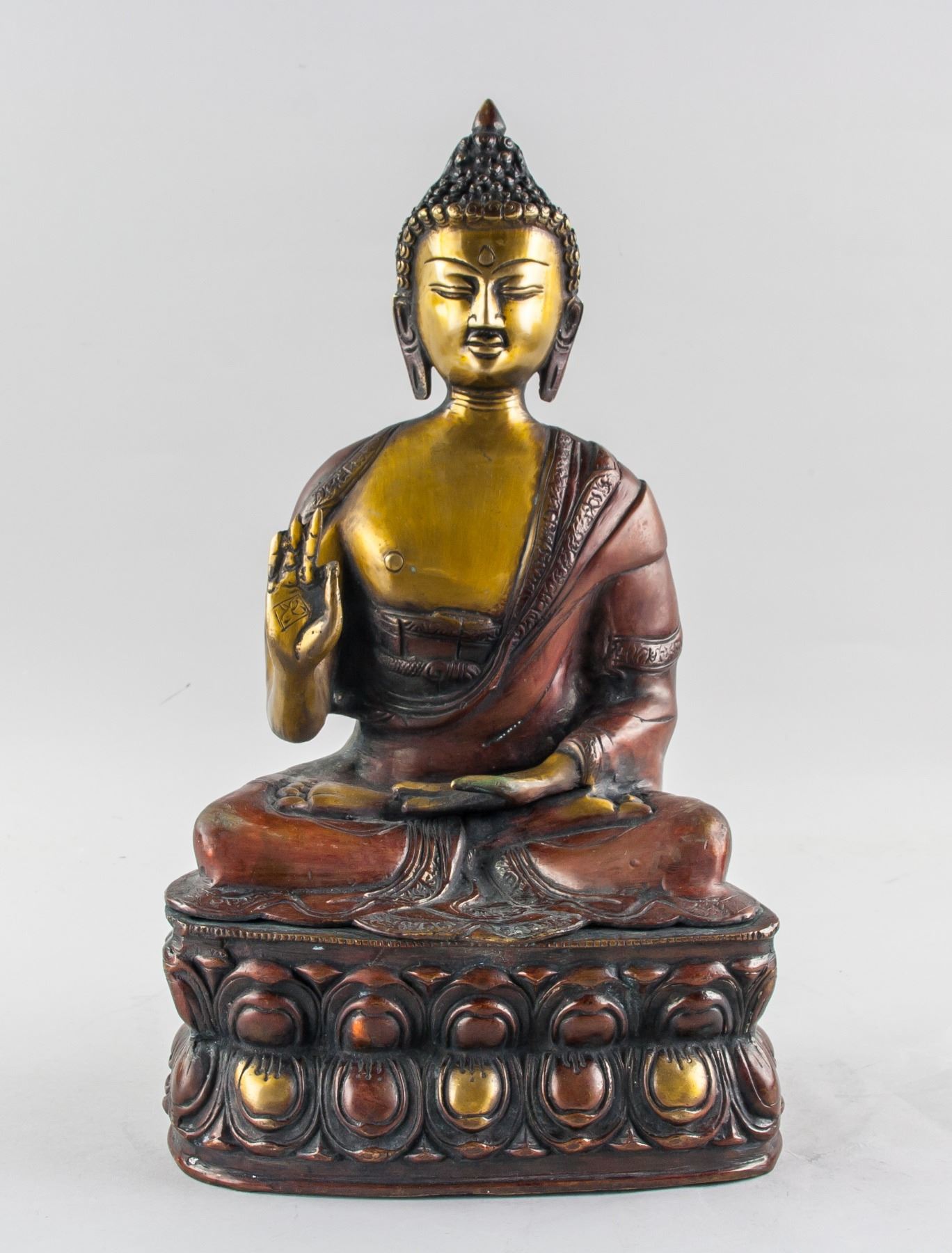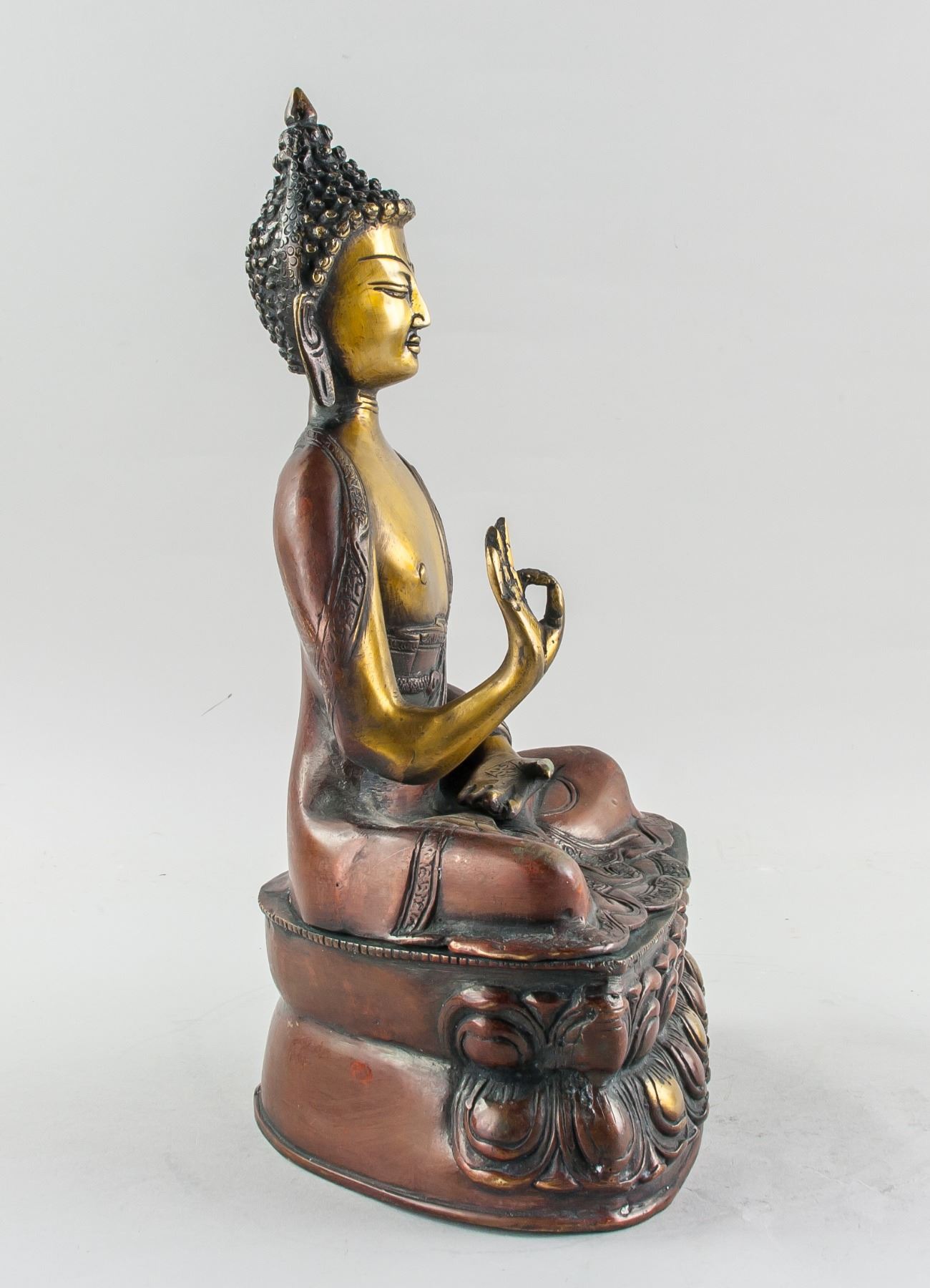 Chinese large gilt bronze Buddha statue, featuring seated Shakyamuni Buddha on lotus pedal base, 21.5 x 27 cm, 4139 grams