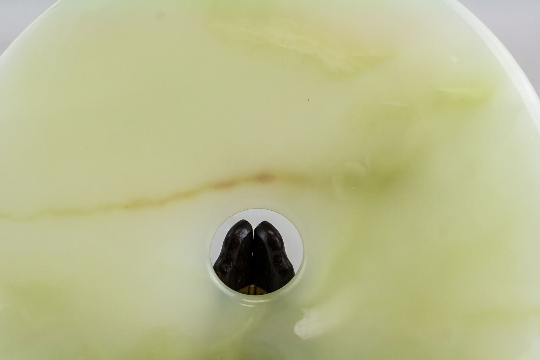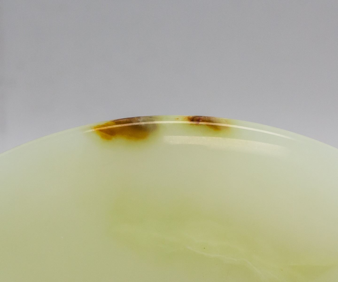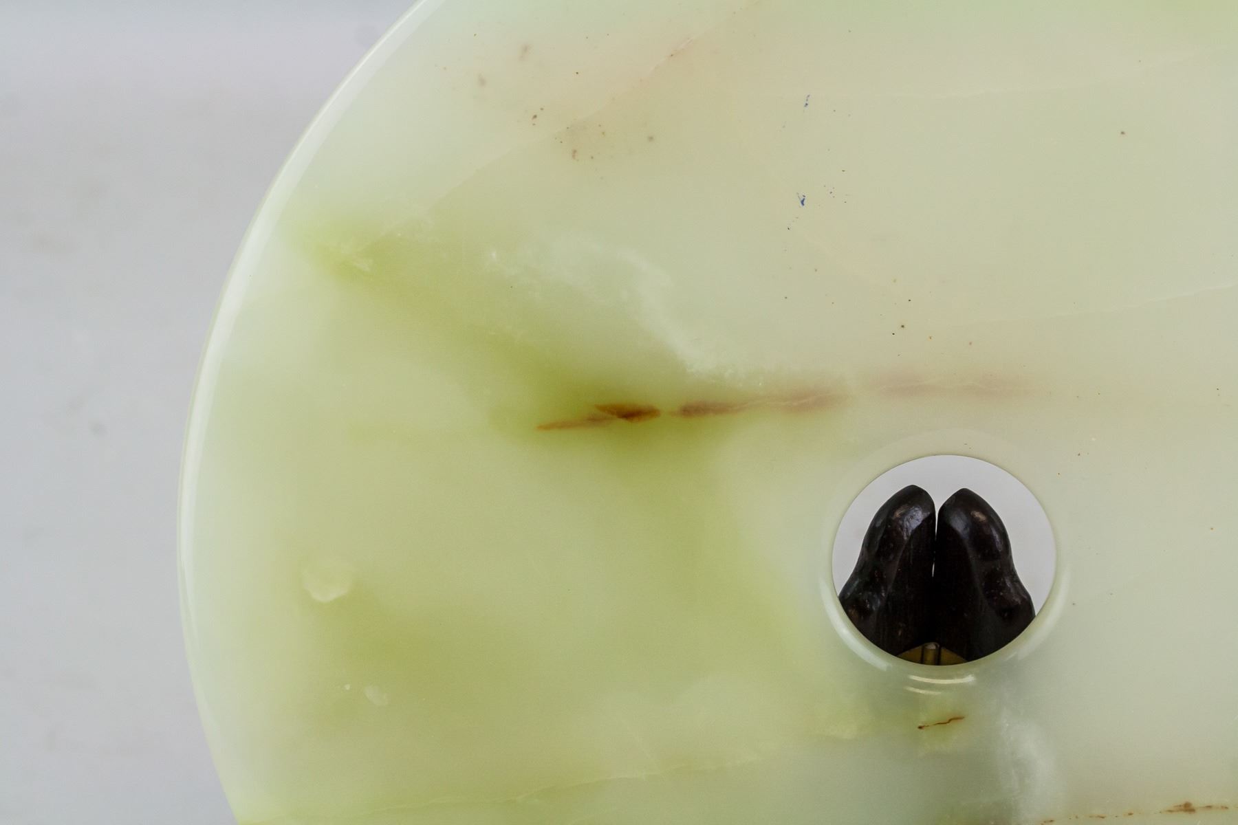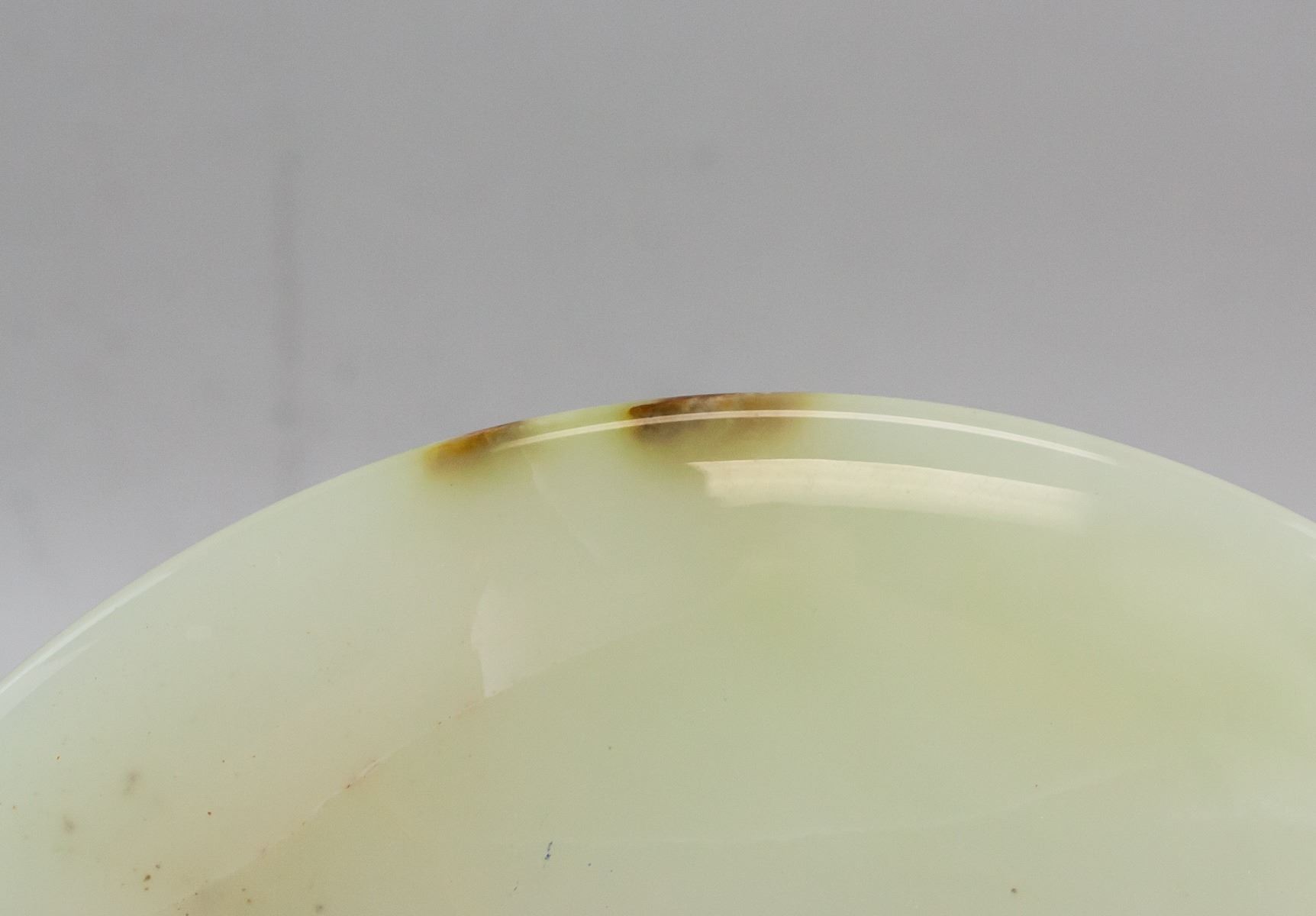 Chinese large white and green jade carved Bi disk. Of round shape with a hole in middle. Of pale green tone with russet tinge. 1 x 25.2 cm, 2004 grams