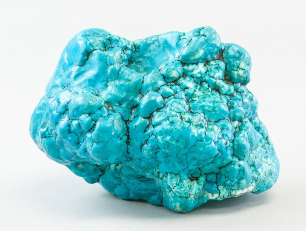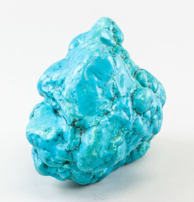 Chinese turquoise boulder. Of bright blue tone. 12 x 16 cm, 2249 grams.