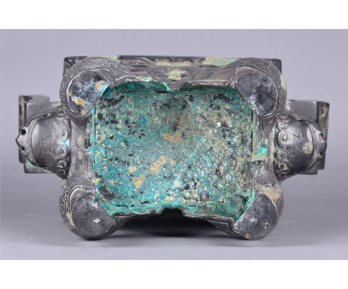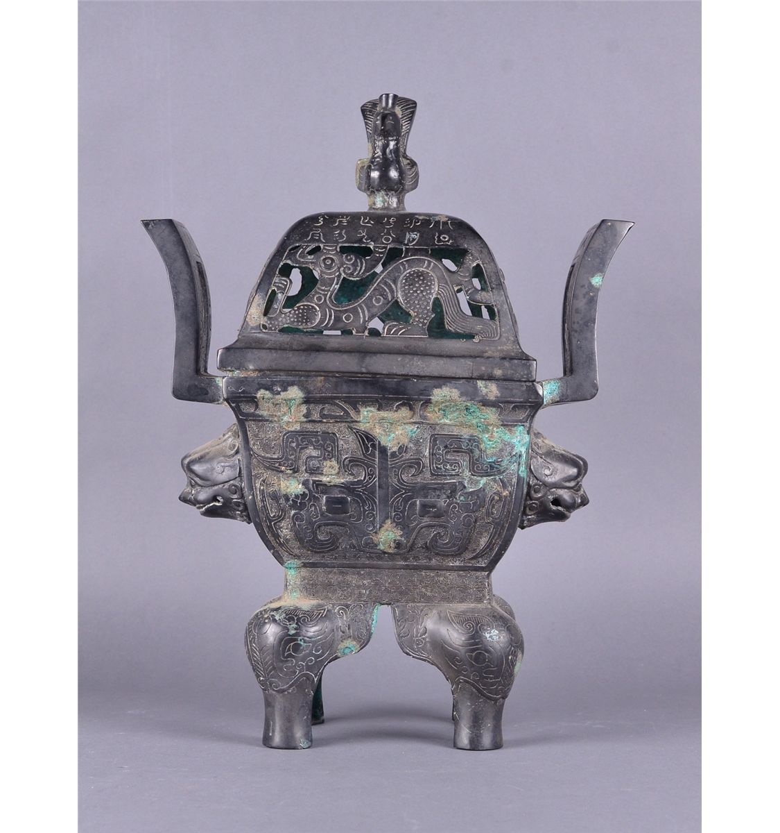 Chinese Shang-style bronze censer; end of Qing Period; L: 32 cm, W: 15 cm, H: 42 cm