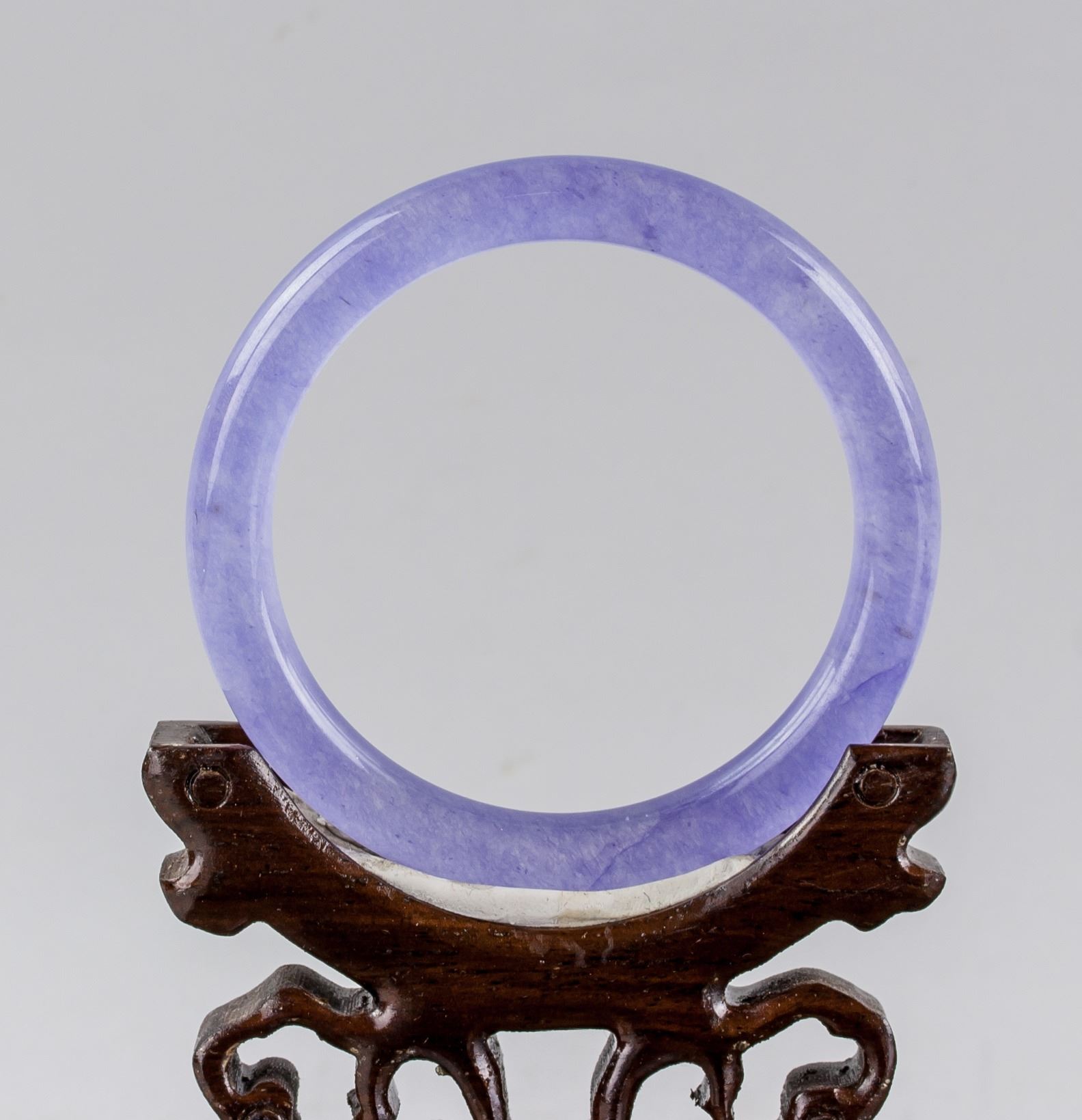 Chinese lavender hardstone carved bangle, of rounded outside and inside, of lavender tone, Inner diameter: 5.7 cm, 31 grams, density: 2.61