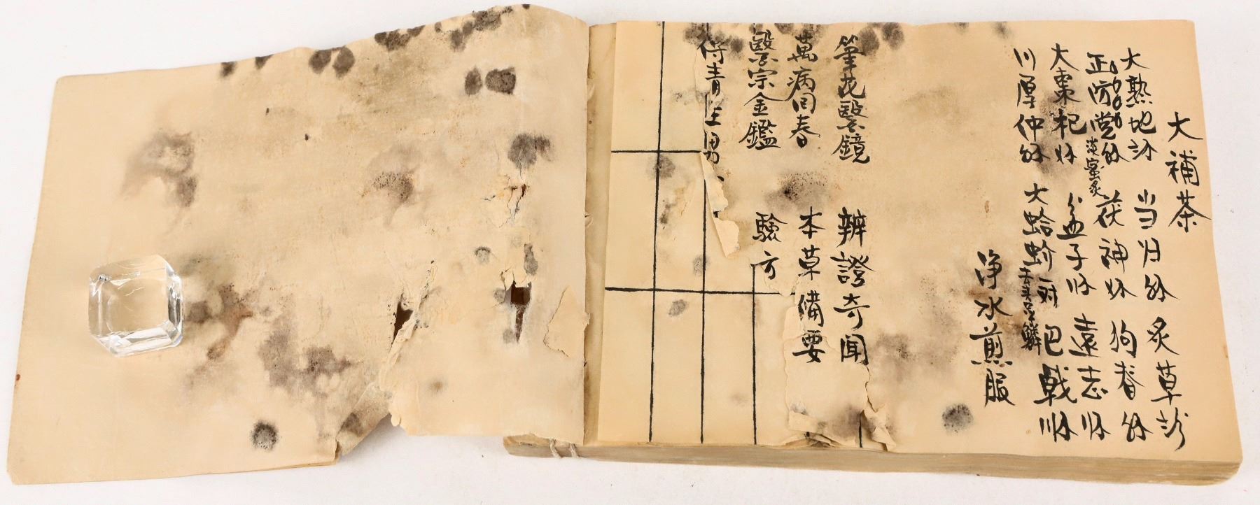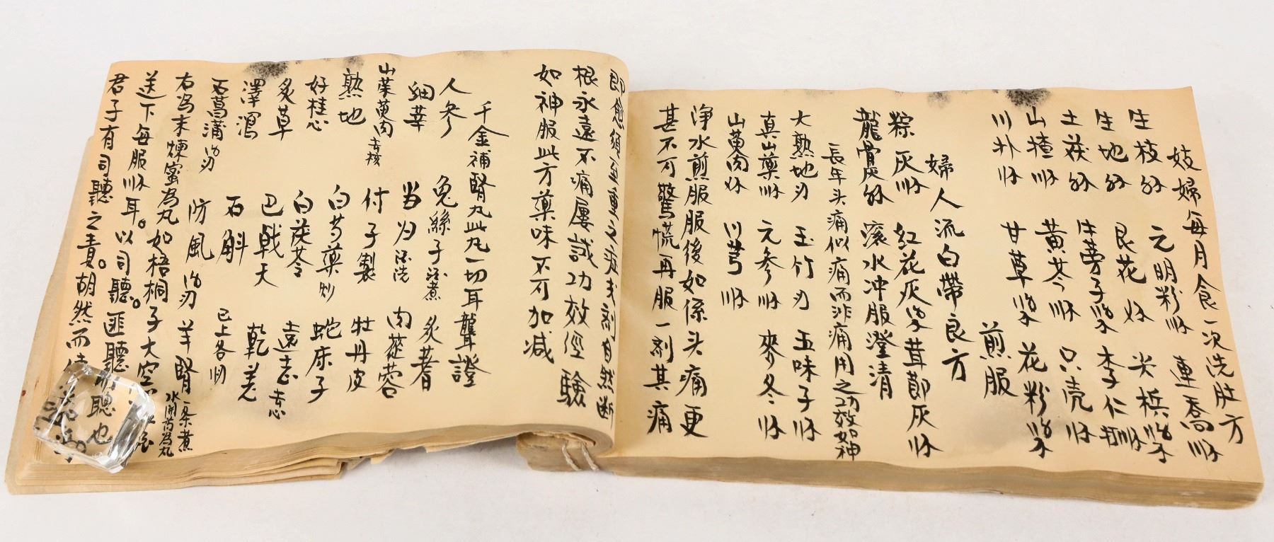 This lot is from Tombstone, circa 1880-1900. It is a Chinese druggist's prescription book, discussing specific remedies, many to be made from natural ingredients. It also discusses when to take the medicine, including "in the dry season."