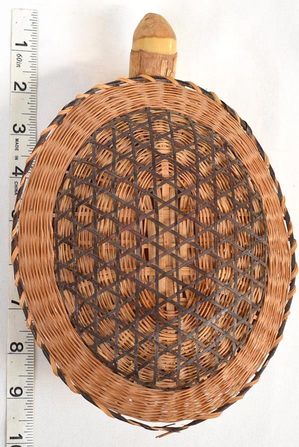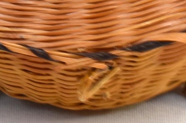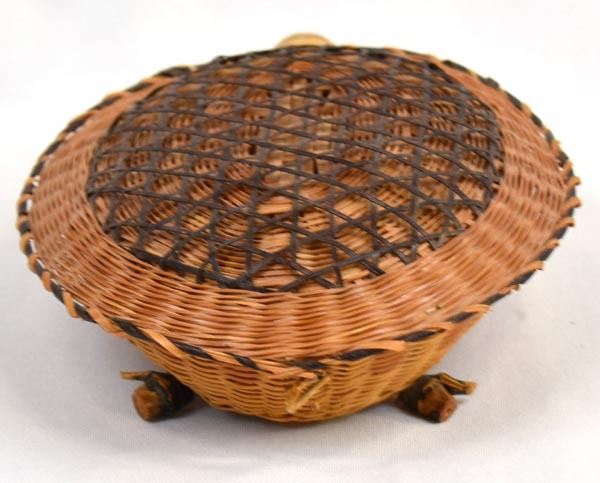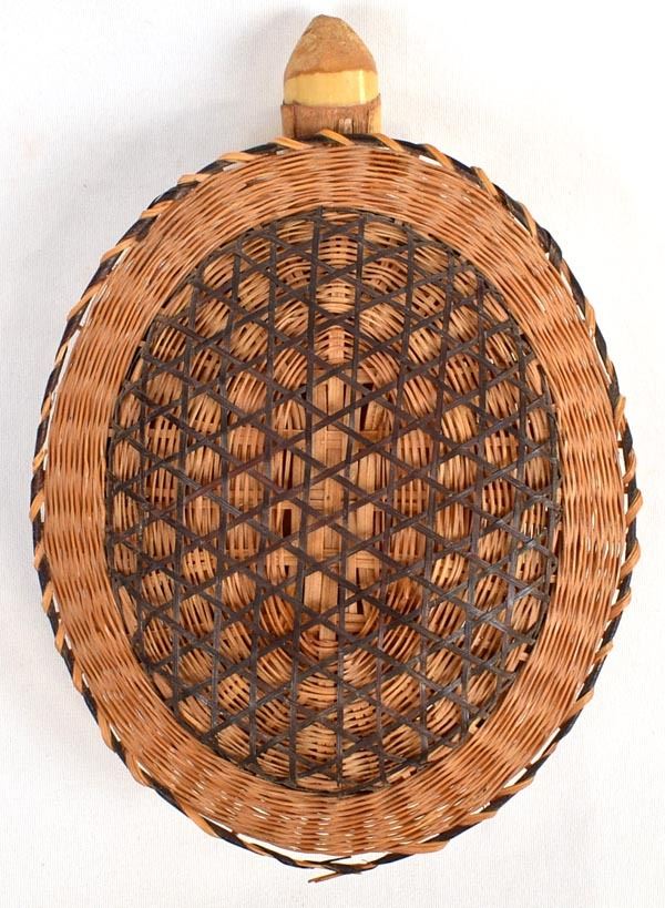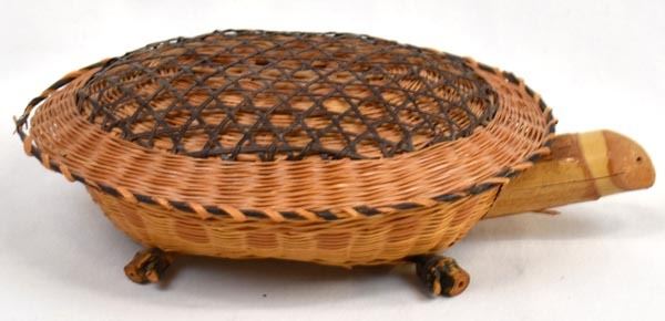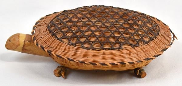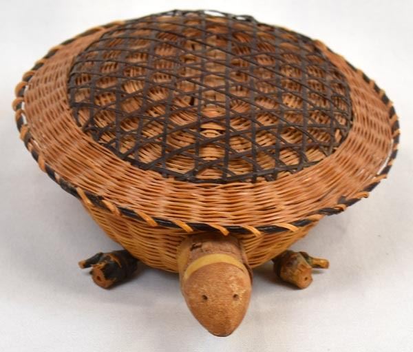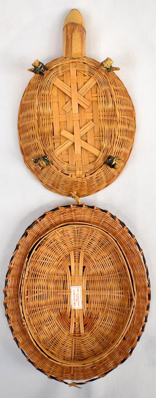 Chinese Lidded Turtle Wicker Basket, measures 7'' x 8'' and has original tag under lid, loose edge on rim of shell