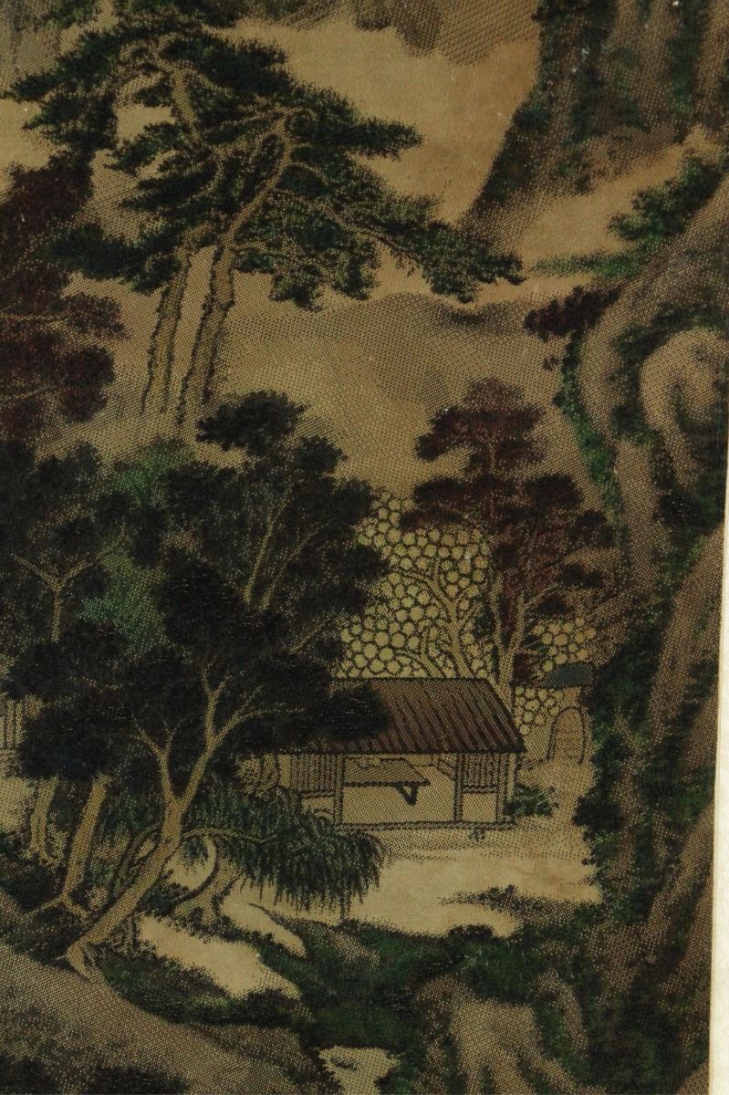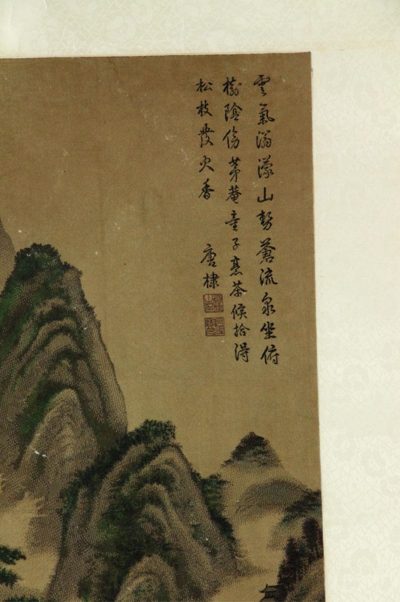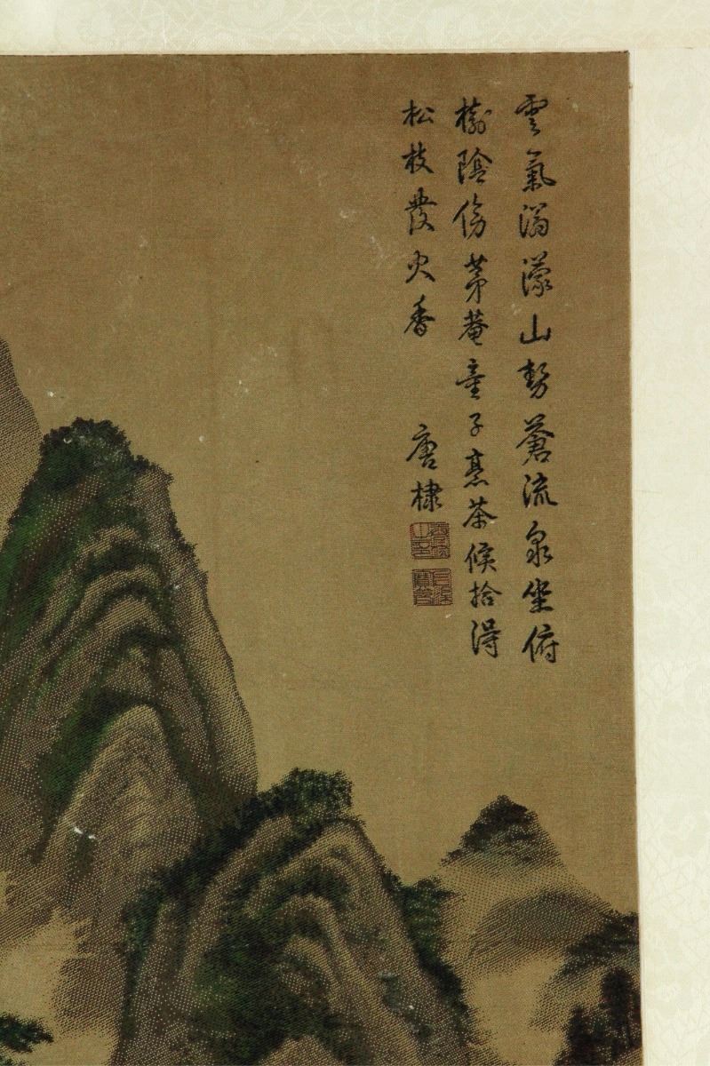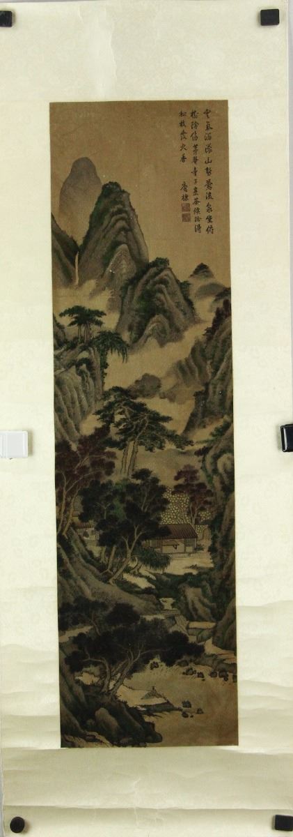 Litho Print Landscape; Chinese ink and watercolour on silk; signed Tang Di and inscribed with two artist seals; 88.5 cm x 24.5 cm.