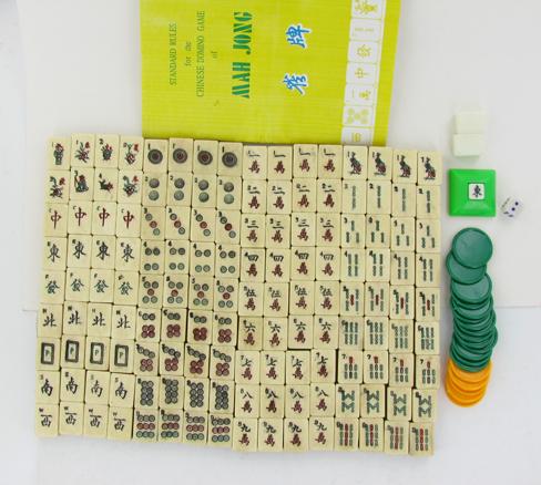 New Bone/Bamboo set nicely organized in 5 drawers inside case; all the required pieces for play