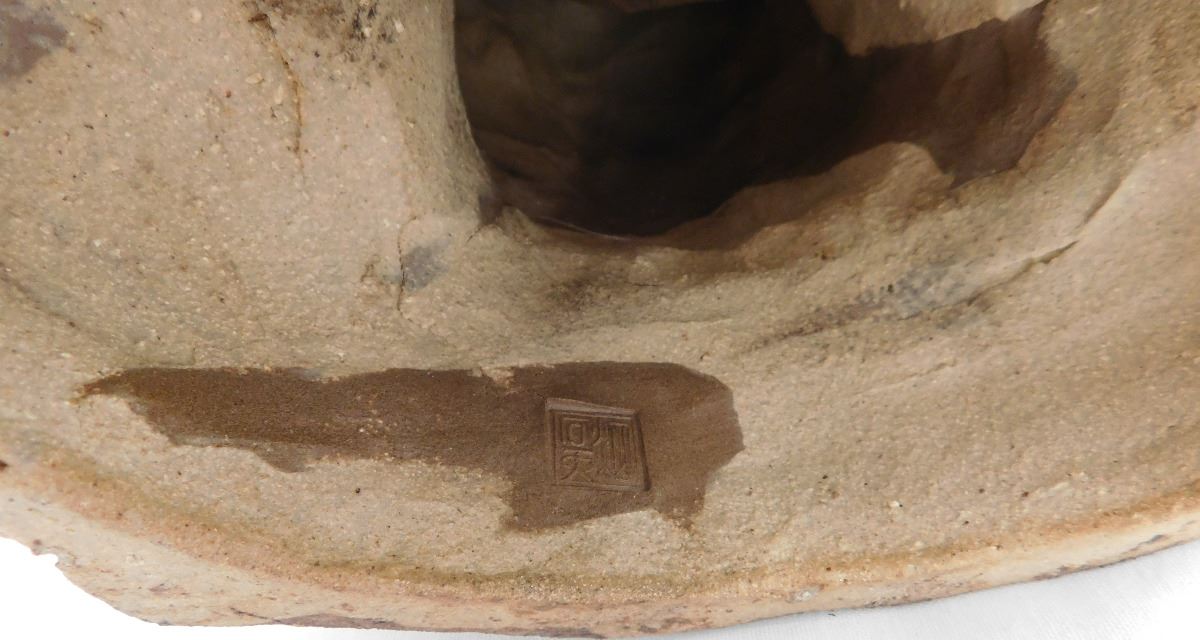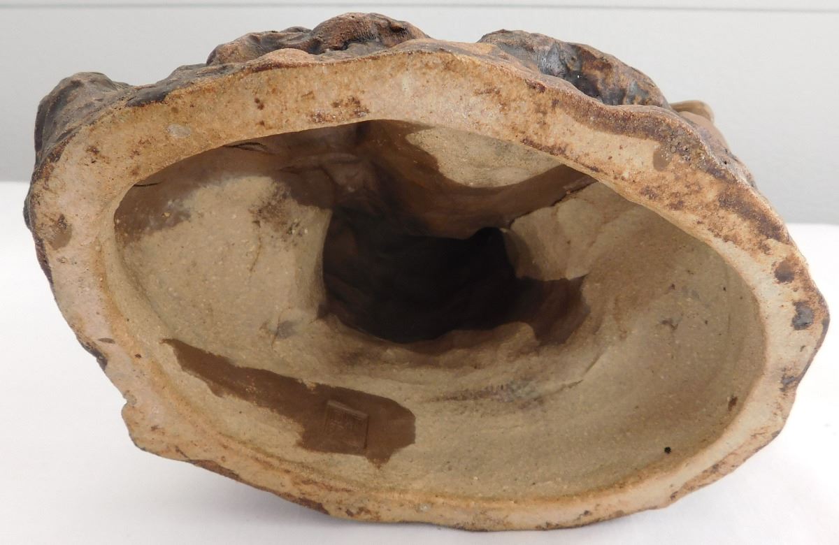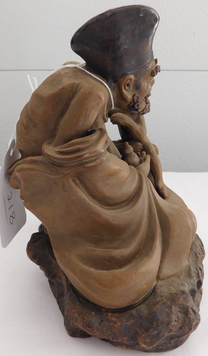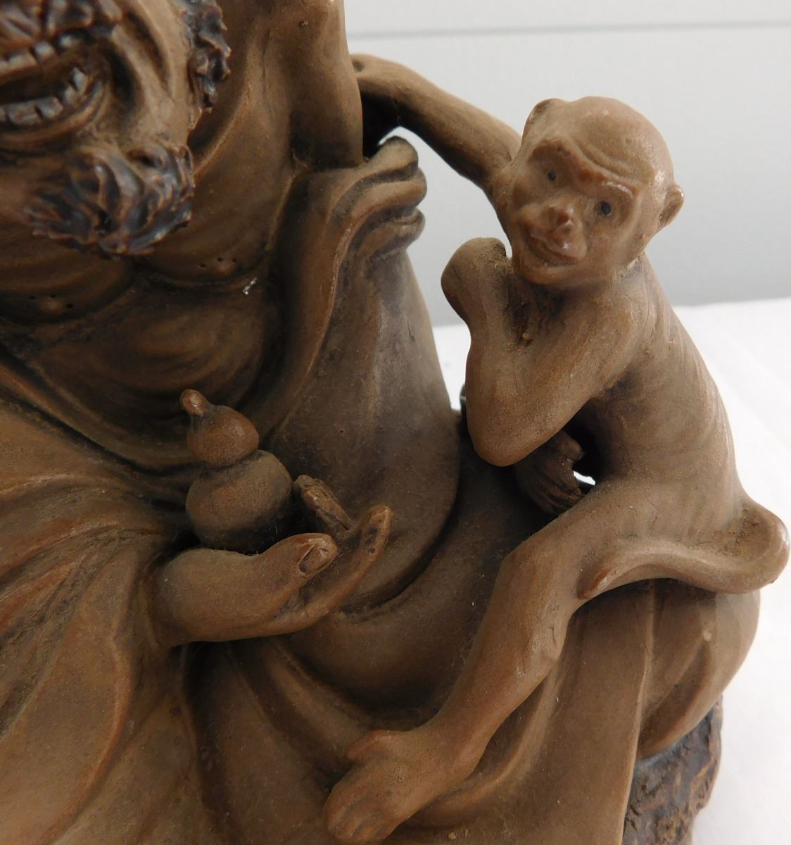 Chinese Man with Monkey, circa early 20th century. Made from clay and paint, item measures 7" x 6". China. Marked on inside bottom. Man with monkey and bottle. Condition: Good, see images. Shipping: $26.50, requires double box.
