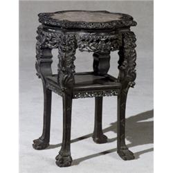 Chinese Marble Inset Top Hongmu Stand, Circa 1900, Some cracks and losses., Height: 32 in (...