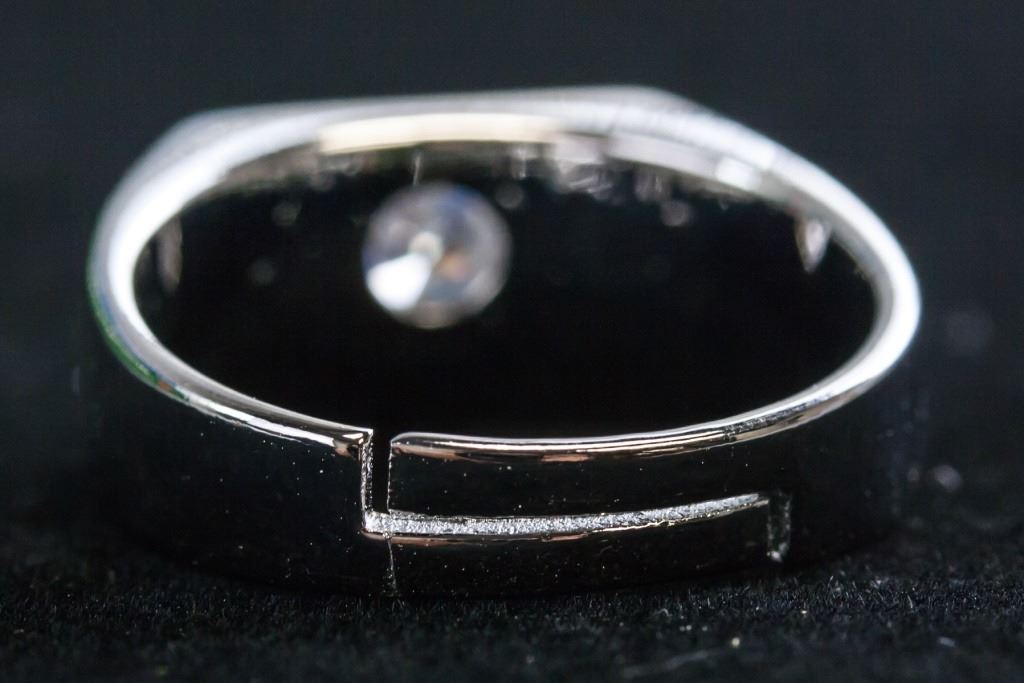Chinese men's ring. With clear stone setting. Silver band stamped with "925". Metal untested. Ring size: 8.5, 5 grams.