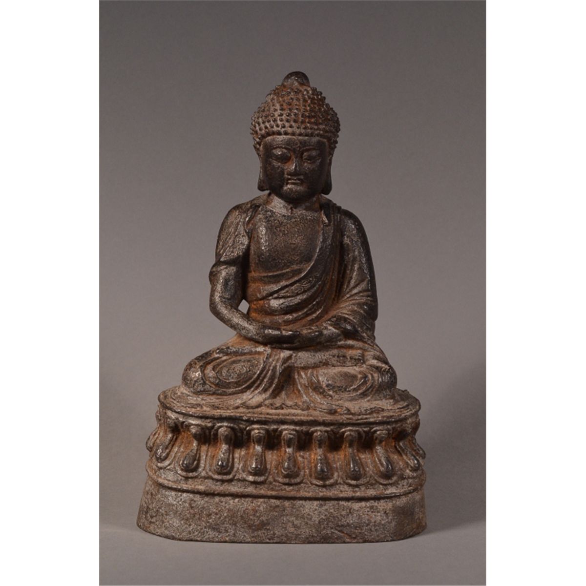 Chinese Ming Dynasty gilt bronze figure of Buddha; seated on a double lotus base; 10" tall, 6" wide, 4" deep