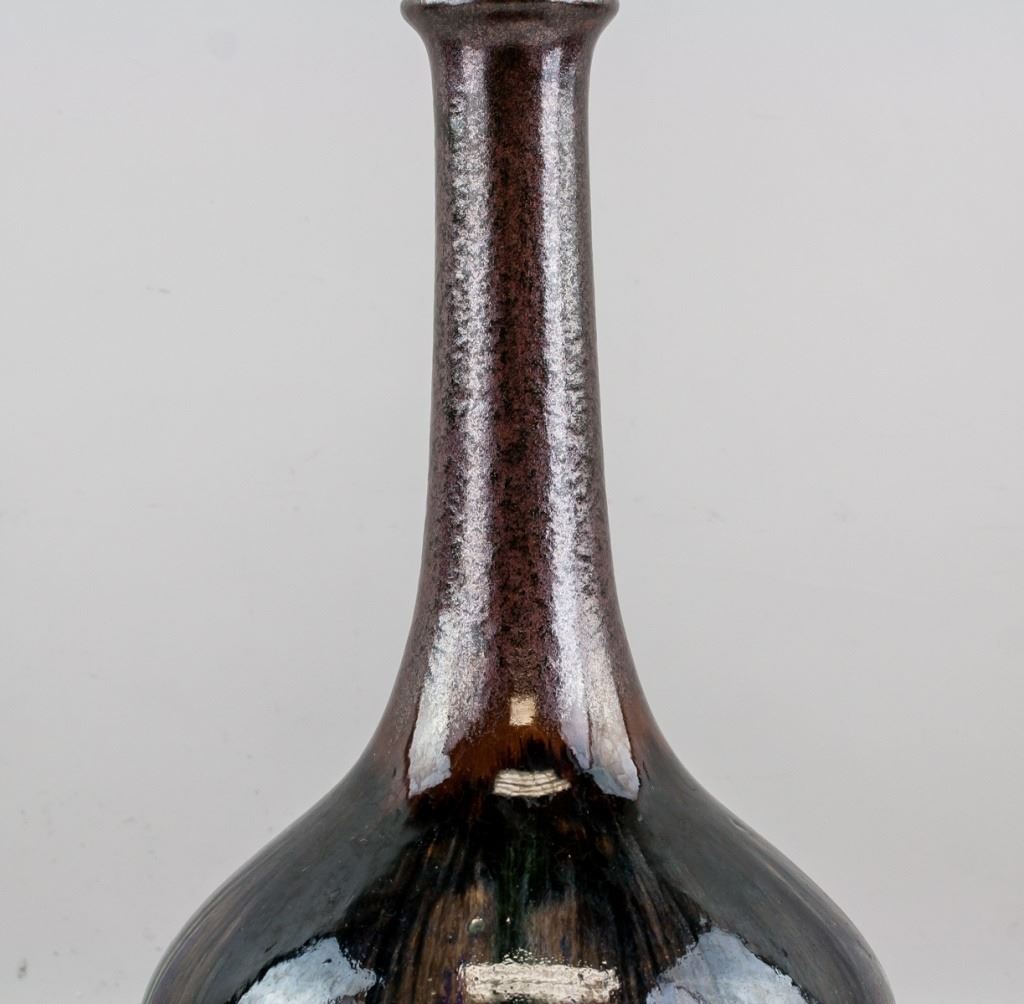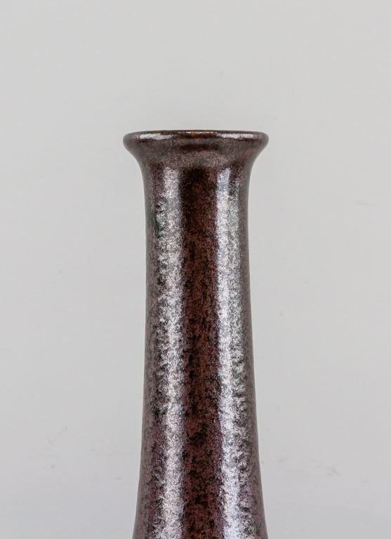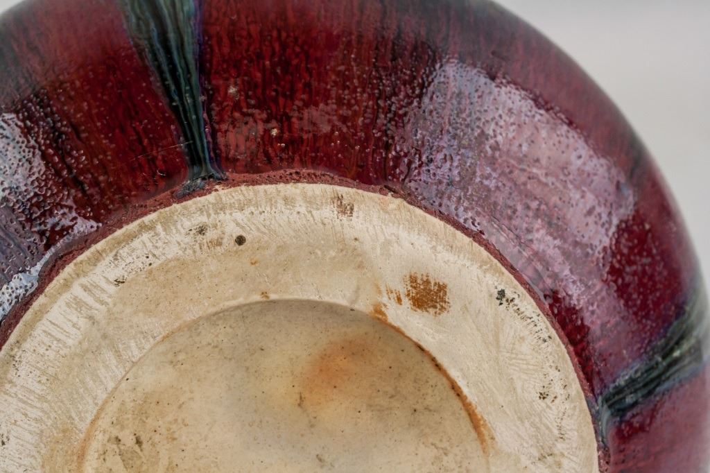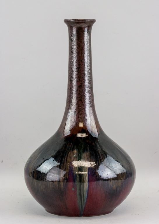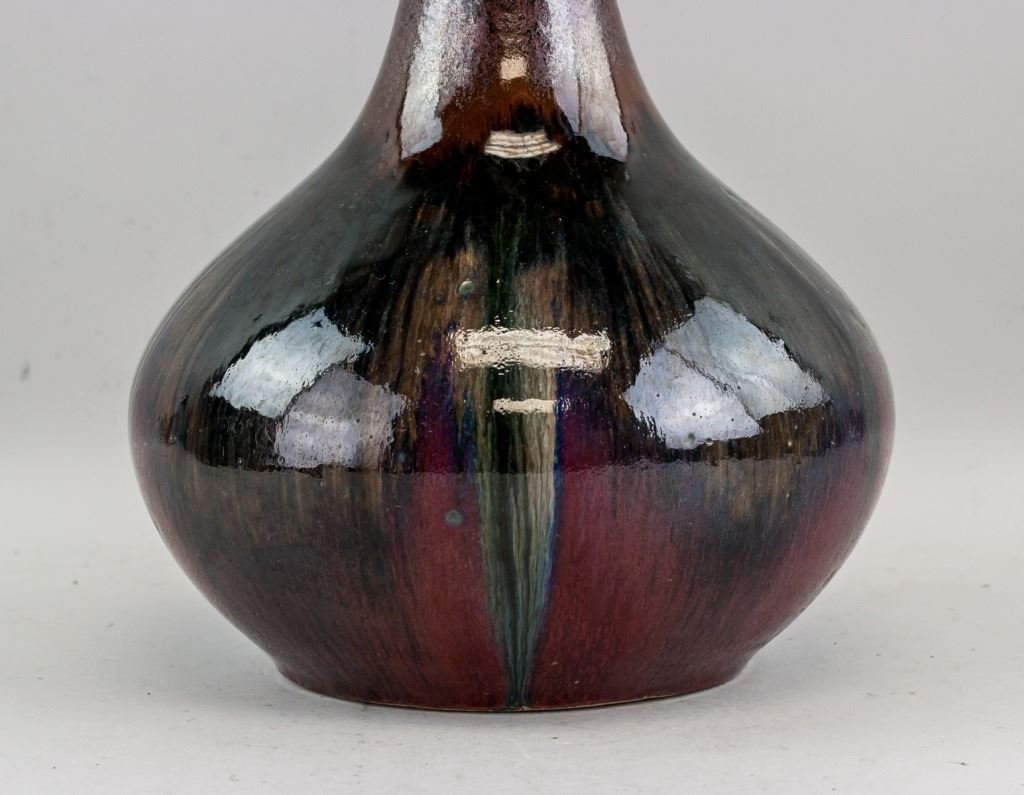 Chinese Ming style porcelain vase. Of globular body with narrow neck. Covered by flambe glaze. 38 x 22 cm, 2350 grams