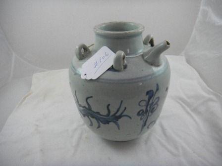 Chinese Ming Vase purchase price originally $360.00. Item has large blue dragon. It is about 10 inch tall by nine inches. The opening is four inches. Condition has minor stains and wear. Shipping $40.00