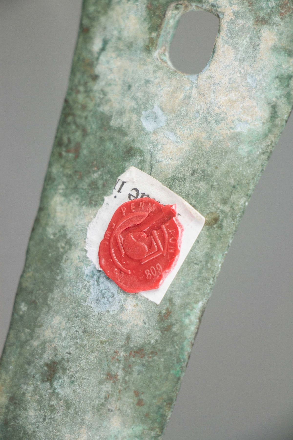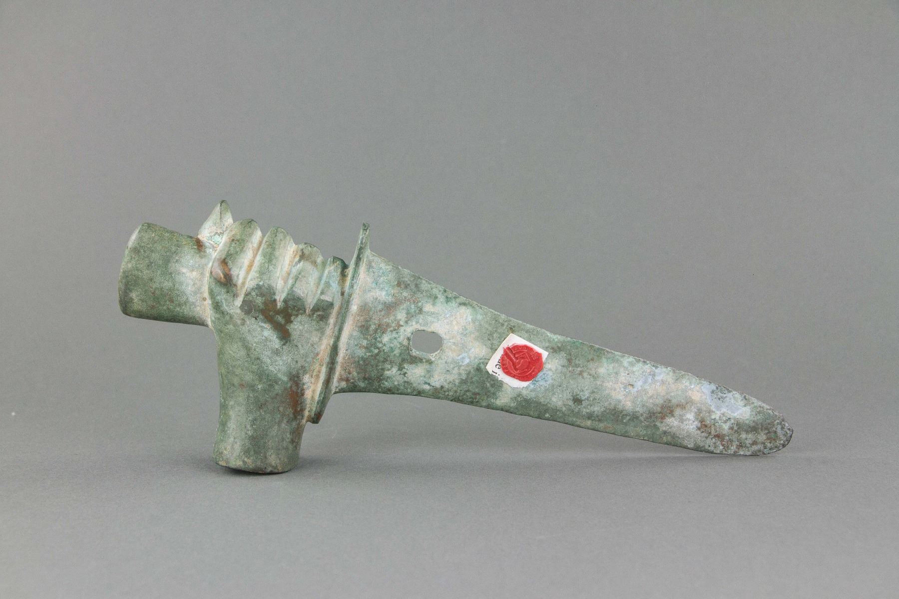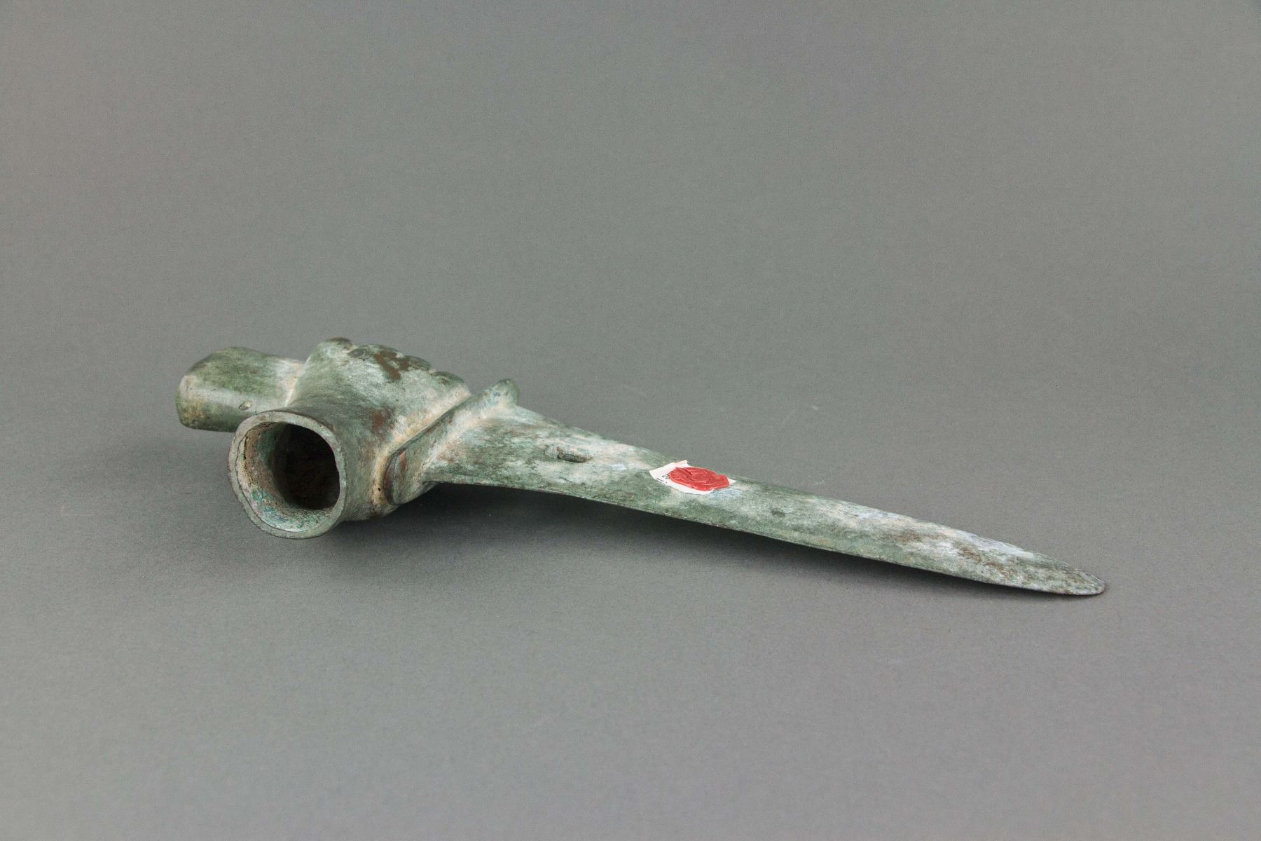 Chinese Ming or Yuan period bronze dagger with seal; the handle with a hand-form shape;28 cm x 11 cm, 571 grams