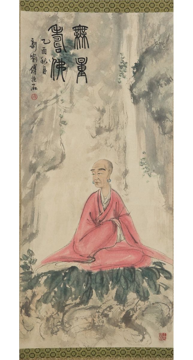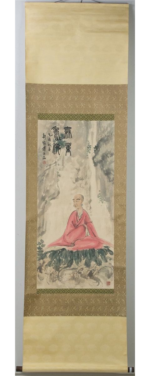 Monk, hanging scroll, Chinese ink and watercolour on paper, signed and sealed; 95 cm x 43 cm