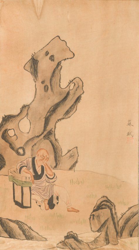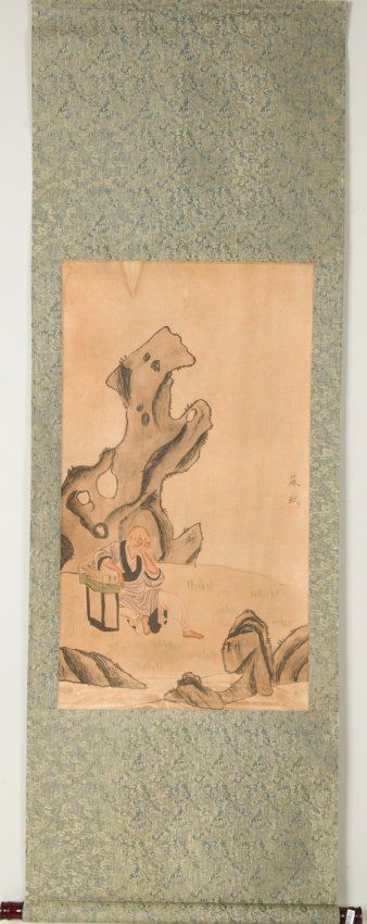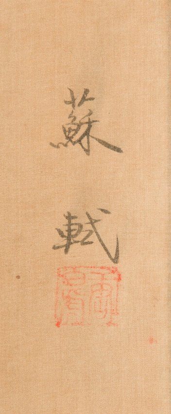 Chinese Monk Painting on Silk Signed Su Shi