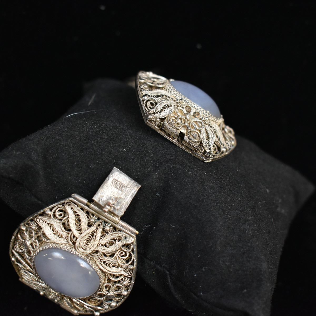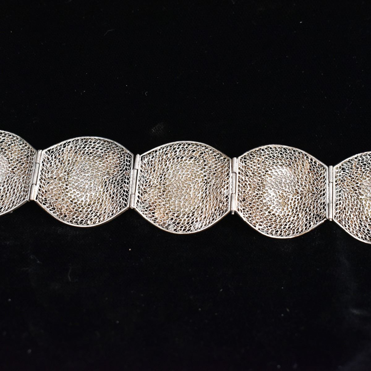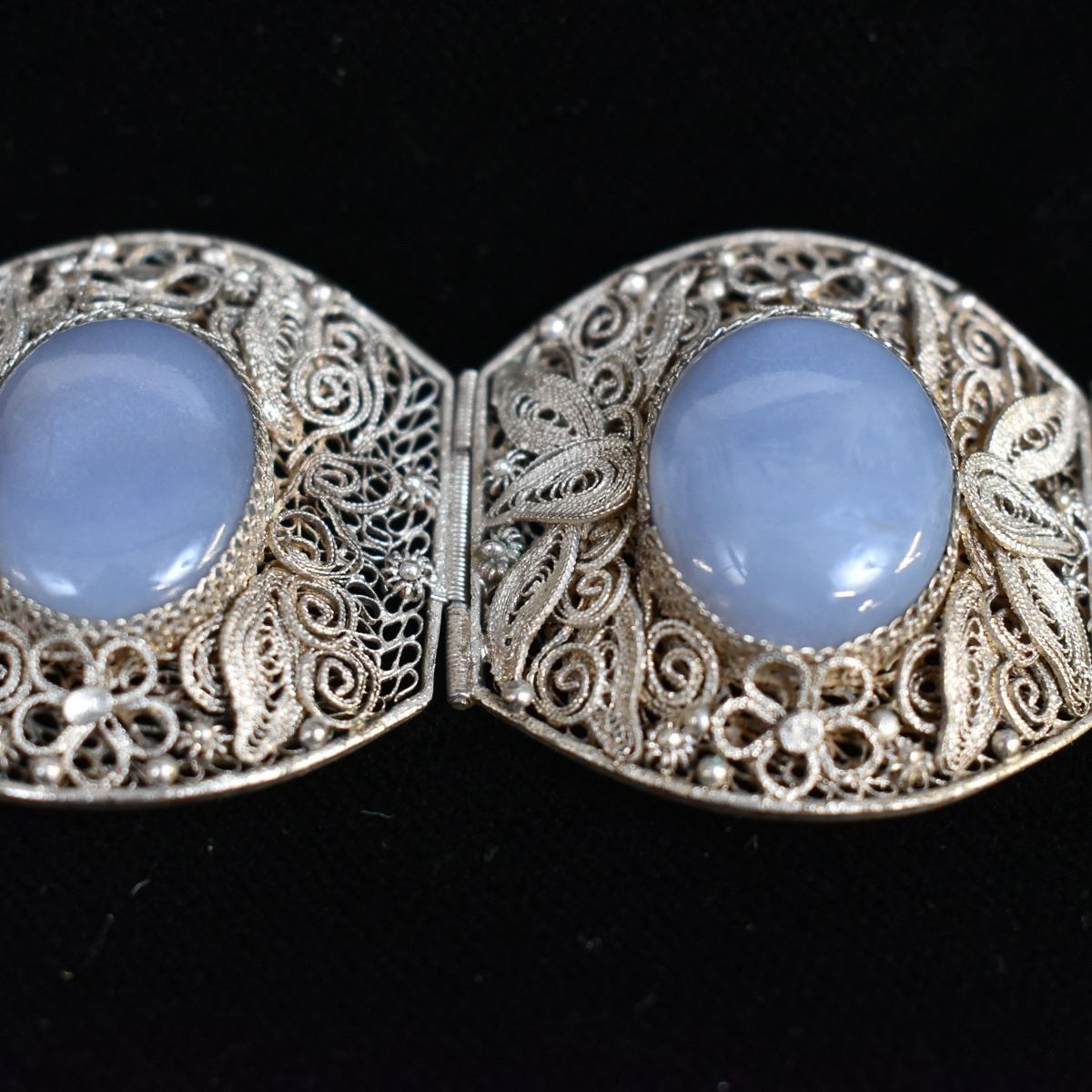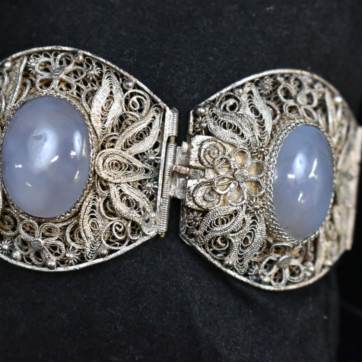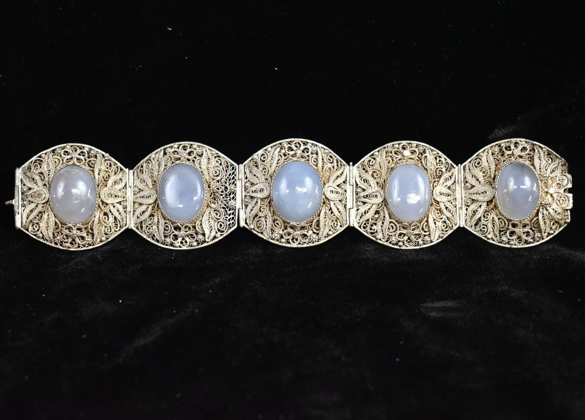 Chinese Moonstone Filigree Link Bracelet, measures 7.5''L end to end x 1.5''W