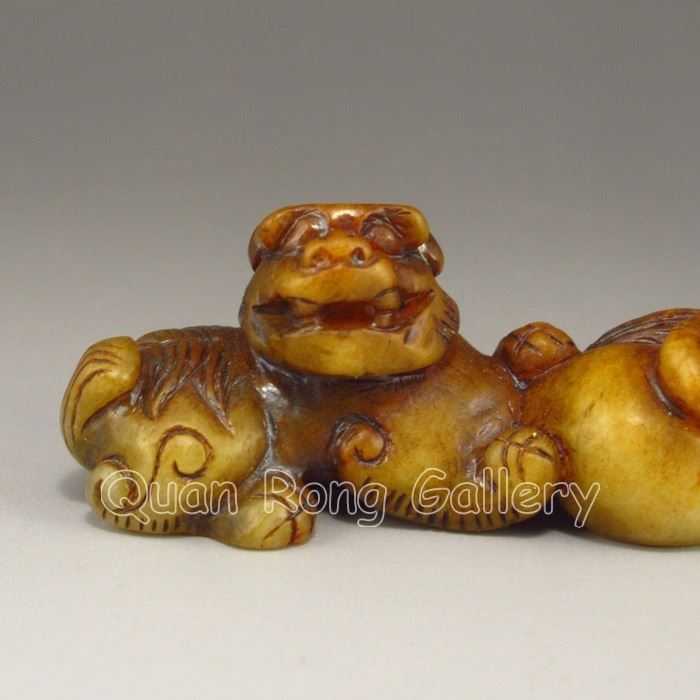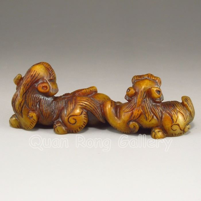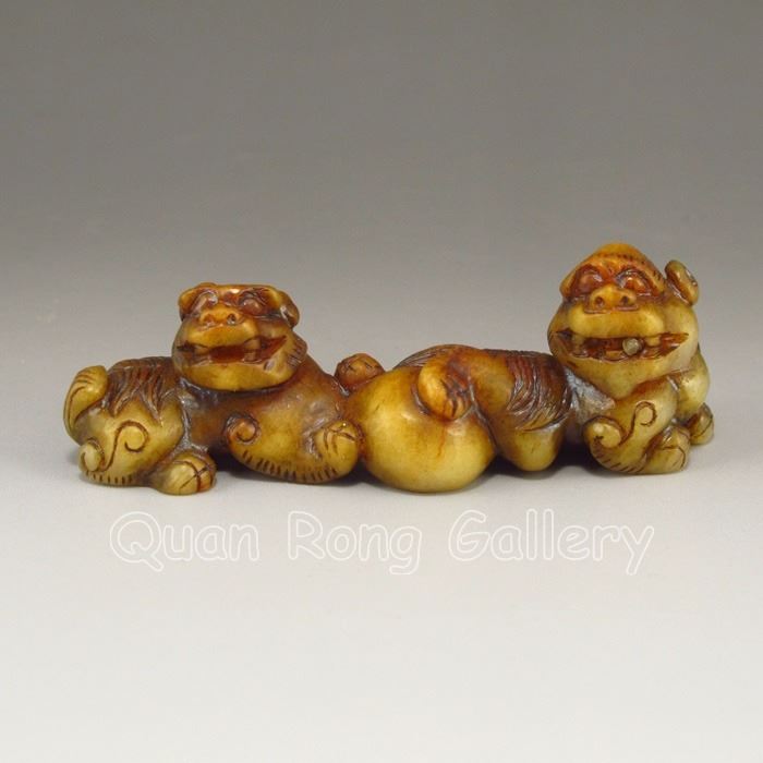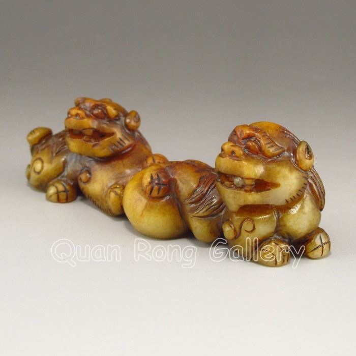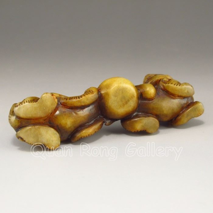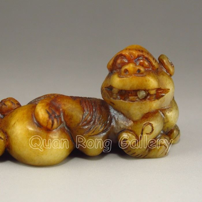 Chinese Natural Jade Statue - Two Fortune Beasts Dimension: 85x28x21(mm) 3.35x1.10x0.83(inches) Weight 0.13 lbs/60 g