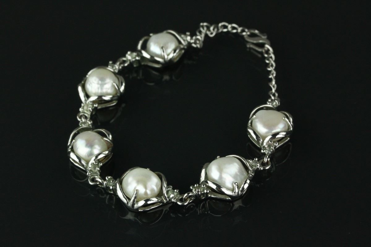 Chinese natural pearl bracelet; inlaid with five natural-shaped pearl beads; L: 21 cm, 20 grams