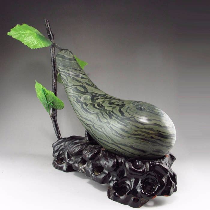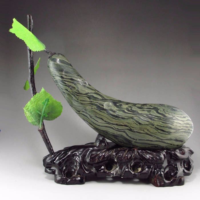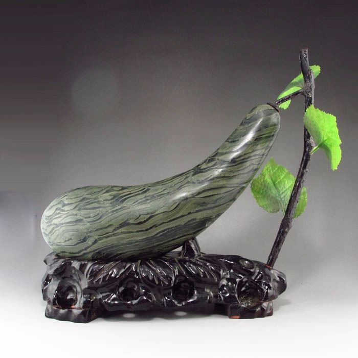 Chinese Natural Watermelon Stone Statue Dimension: 315x100x86(mm) 12.4x3.94x3.39(inches) Weight 7.79 lbs/3535 g The total weight does not include the base. The base is included after you have won the auction.