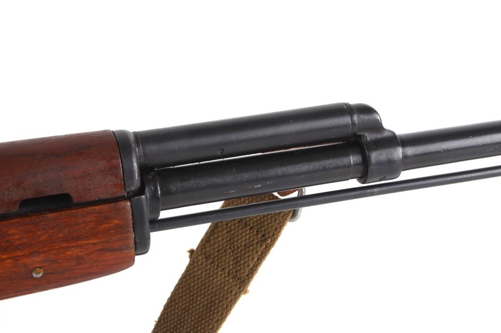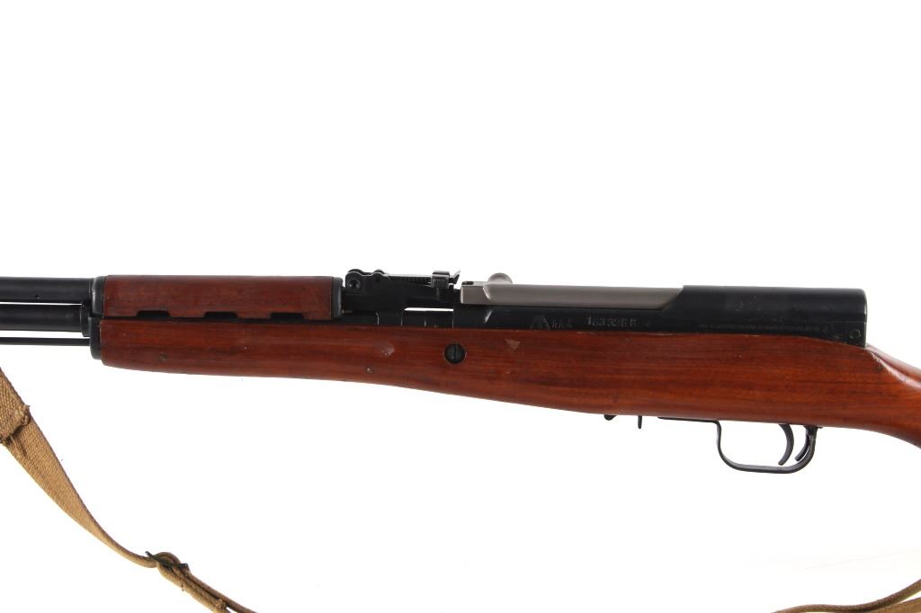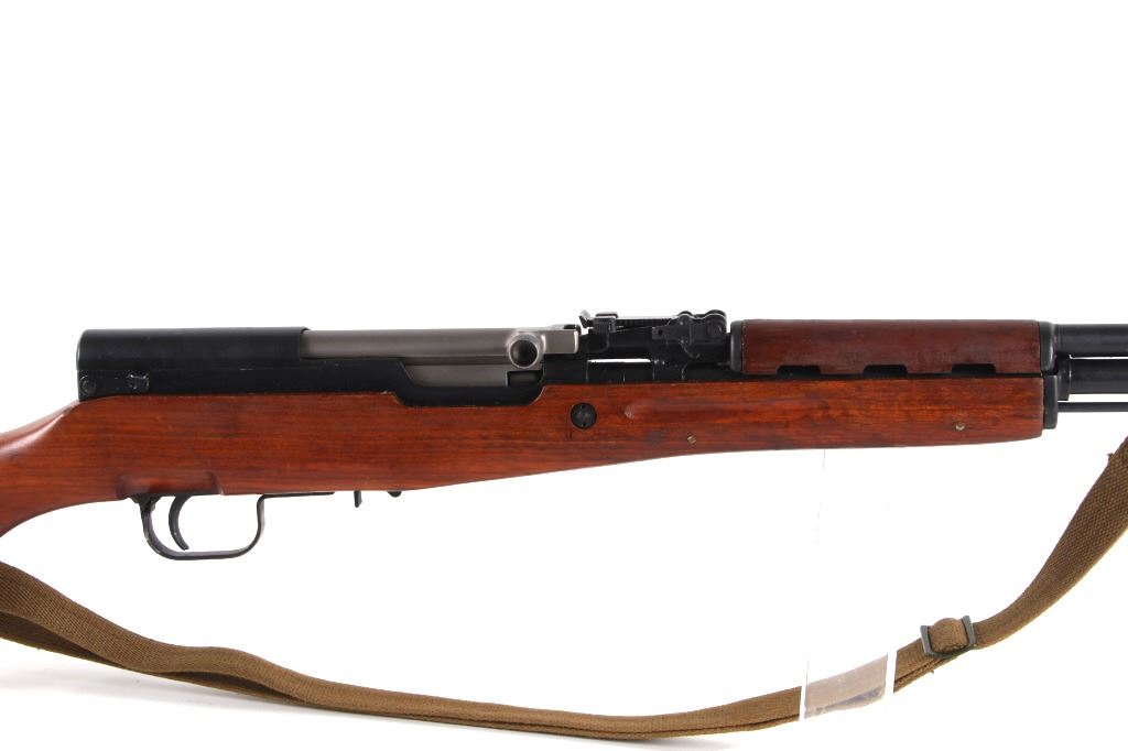 Featured in this lot is a Chinese Norico SKS semi automatic rifle imported by Poly and chambered in 7.62 x 39. This rifle was manufactured by Norico in China in late 1957, and later imported by Poly USA GA. The rifle features a 20" round barrel, hard wood stock, semi automatic action, manual lock safety, and adjustable rear sight. The piece shows the attachment point for an under barrel bayonet and ram rod with the cleaning kit stored in the stock. The left side of the rifle receiver is marked with "SKS 7.62x39 MADE IN CHINA BY NORINCO POLY USA ATL. GA J" with the serial number and Chinese factory markings. The rifle shows a canvas on fixed attachment points with the stock stamped with part of the serial number. The rifle mechanically shows working condition and is missing the 10 round magazine. The rifle shows very good condition overall with minimal wear. The rifle weighs 7lb 10oz. Serial Number: 1633266. This firearm qualifies as a Curio & Relic firearm and requires FFL Transfer or NICS Background Check.*