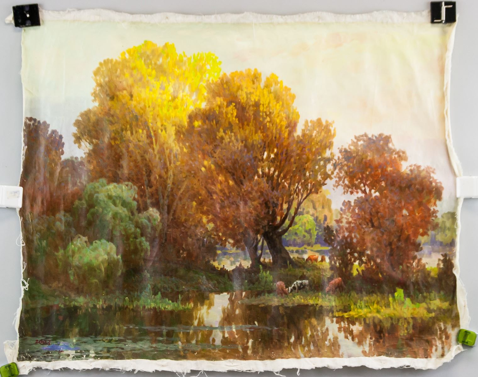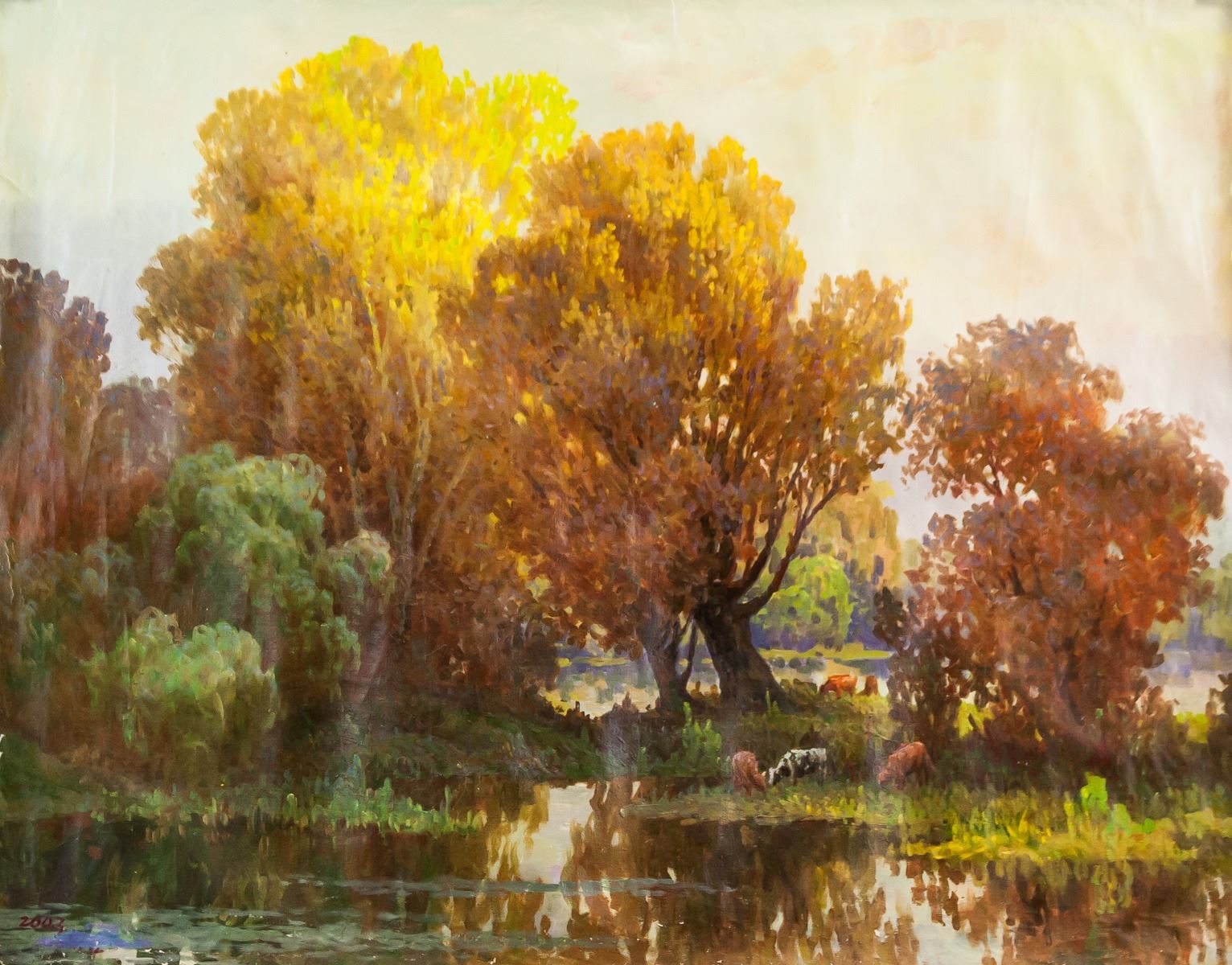 Oil on canvas. Featuring forest landscape. Dated 2003. 57 x 73 cm