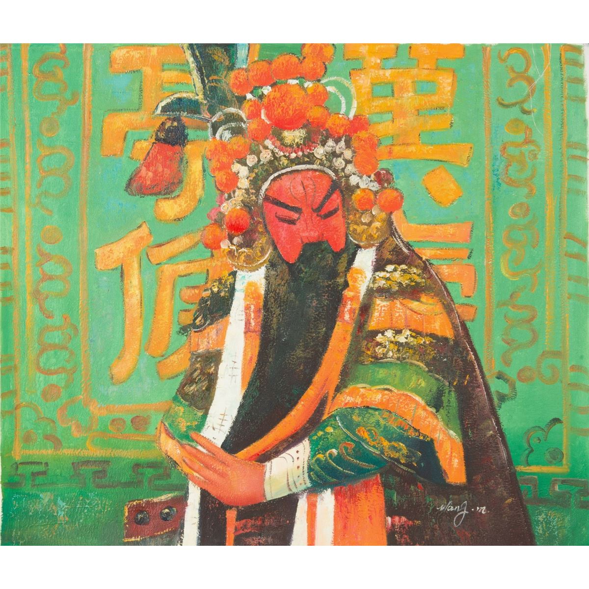 Guan Gong, oil on canvas, signed Wang M. 74 cm x 62 cm. Provenance: T. Ng Collection Toronto.