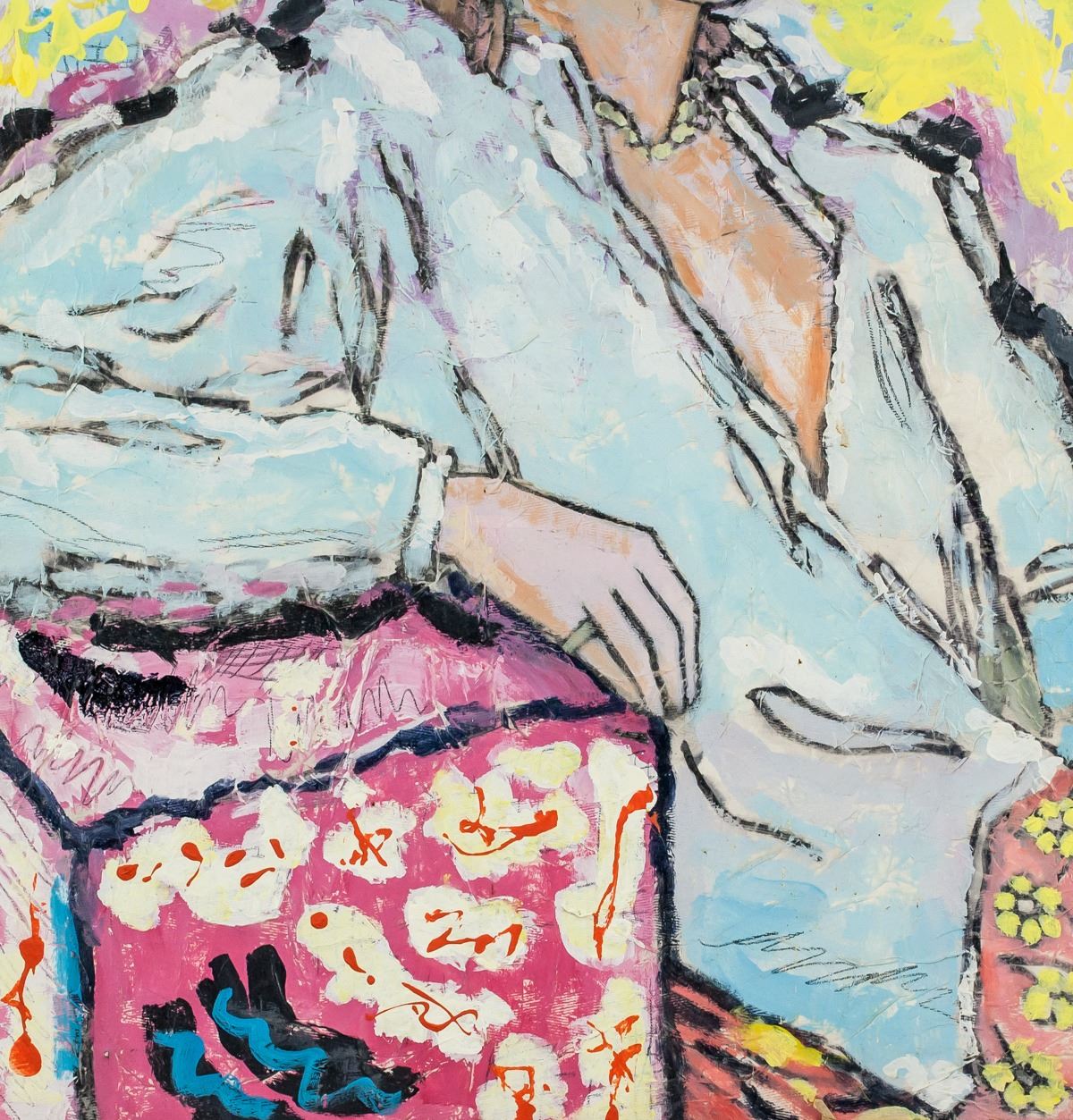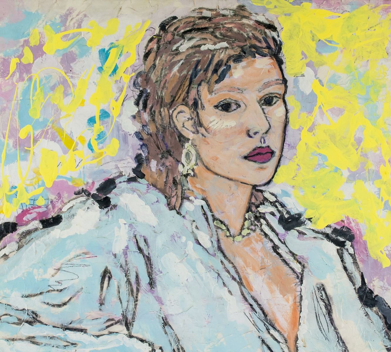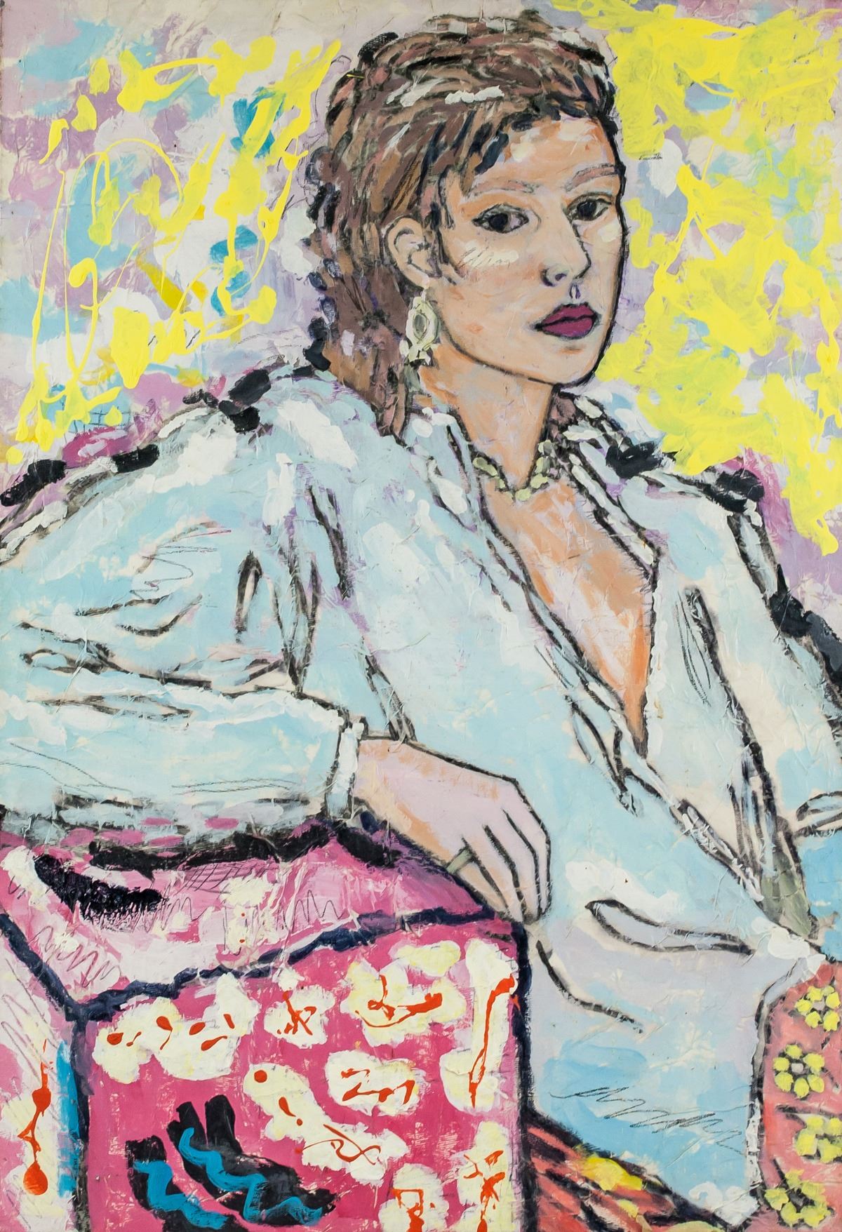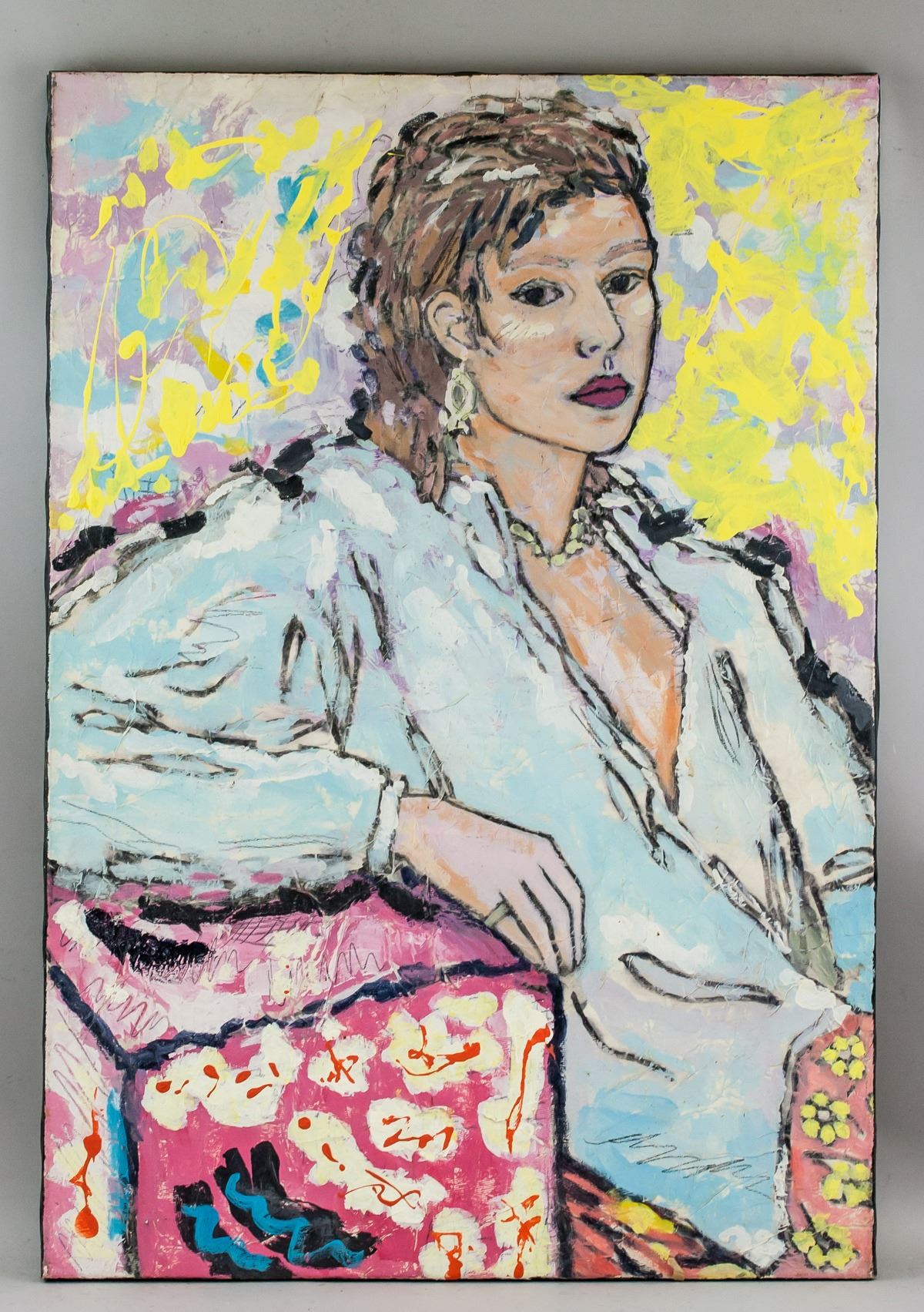 Oil on canvas, stretched and unframed. Featuring portrait of a woman. Signed illegibly on lower right corner. Inscribed with "130588" on stretcher bar on verso. 81 x 55 cm