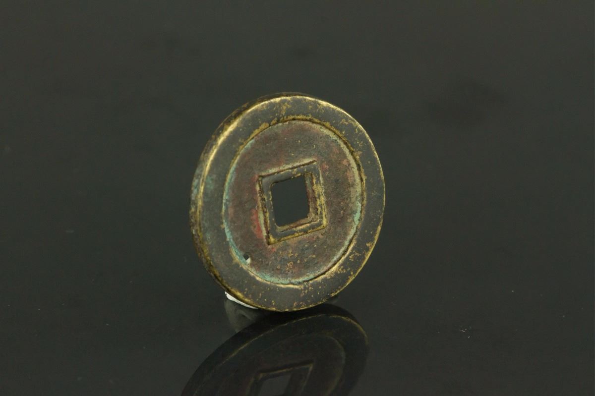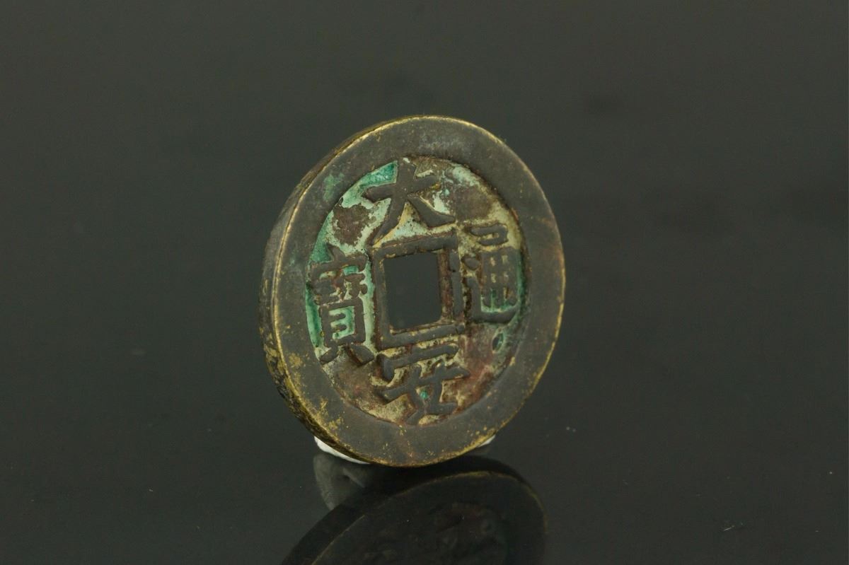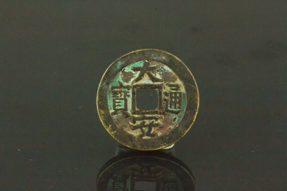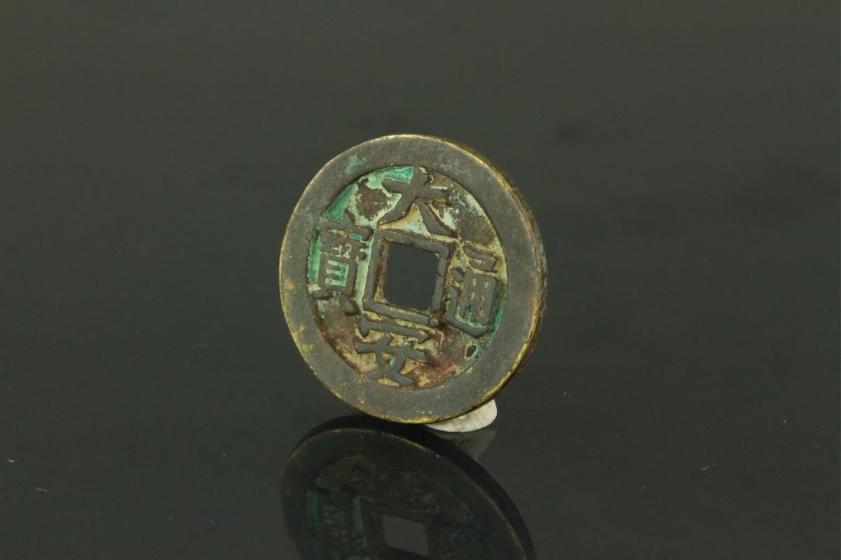 Chinese Da An Tong Bao bronze coin; of round with a square hole; blank reserve side; D: 2.4 cm, 6.17 grams