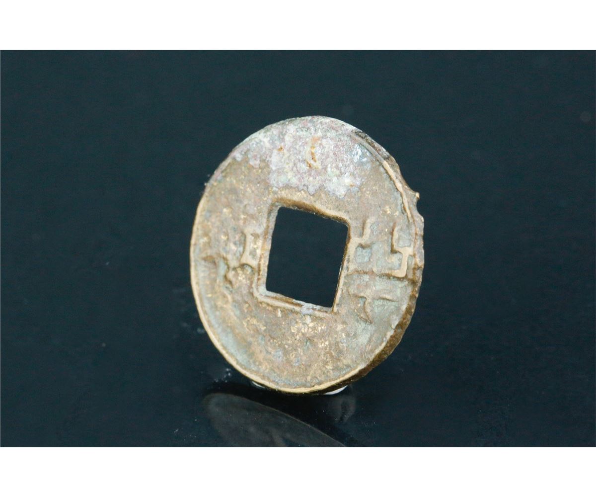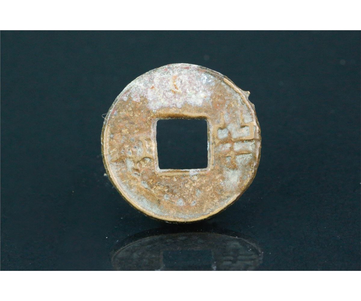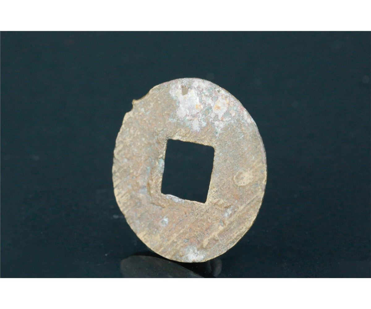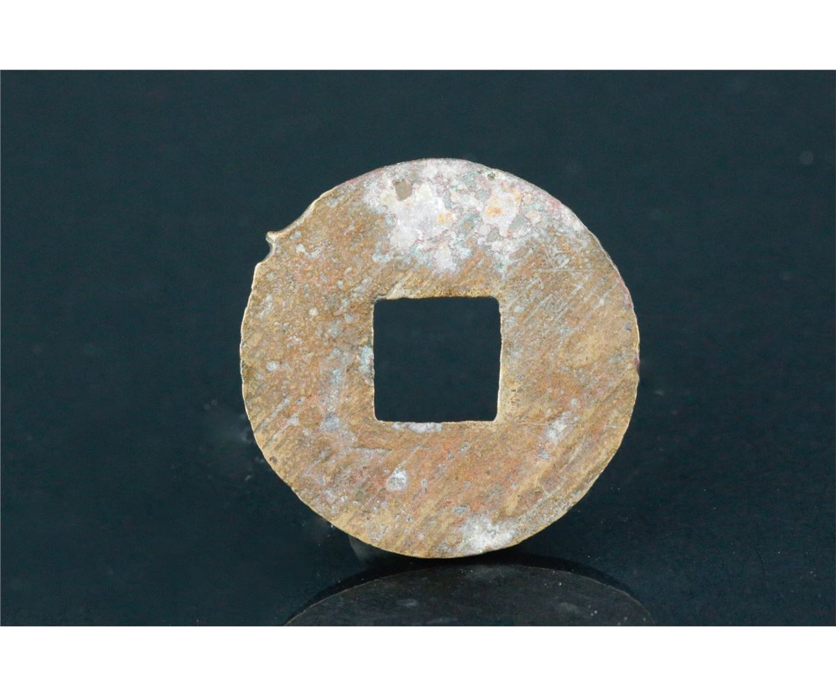 Chinese old copper coin; round form with square hole; with rust spots on body; D: 22 mm, 3 grams