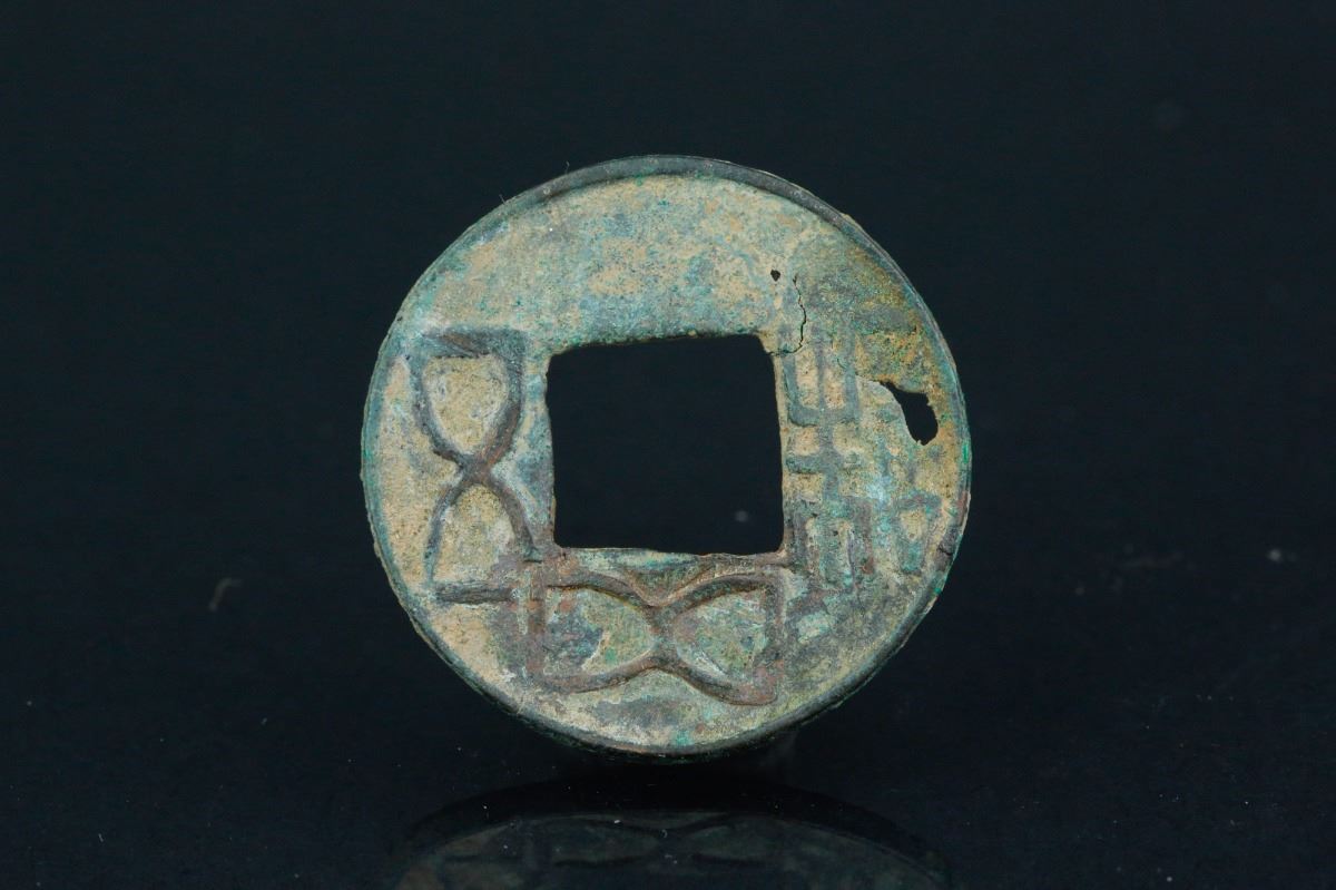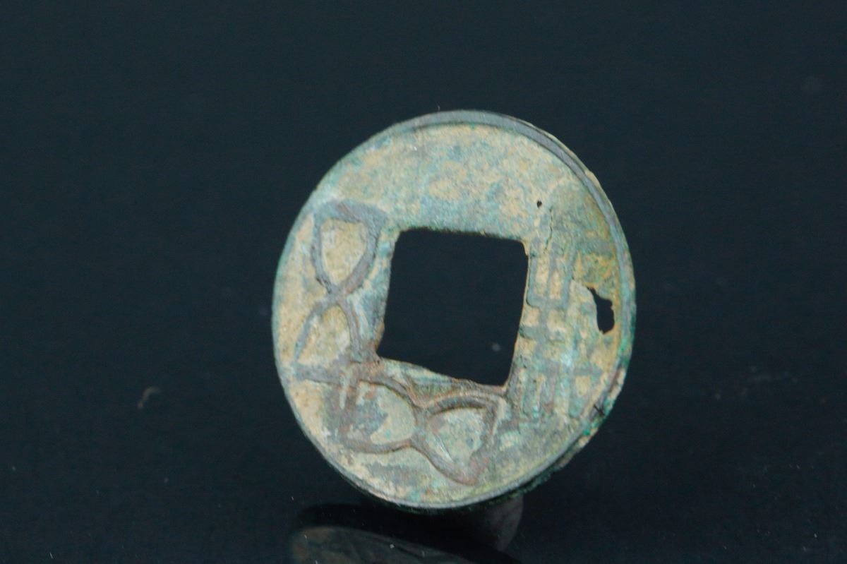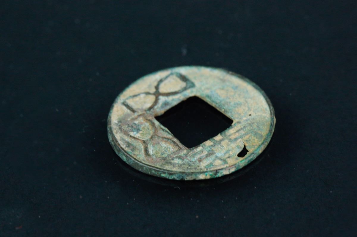 Chinese old copper coin; round form with square hole; covered by verdigris rust on body; D: 22 mm, 2 grams