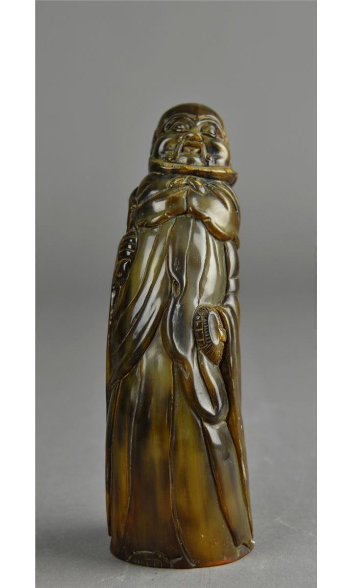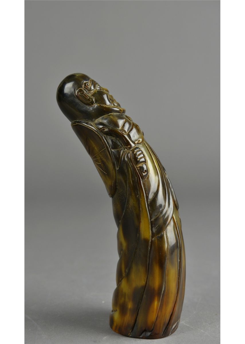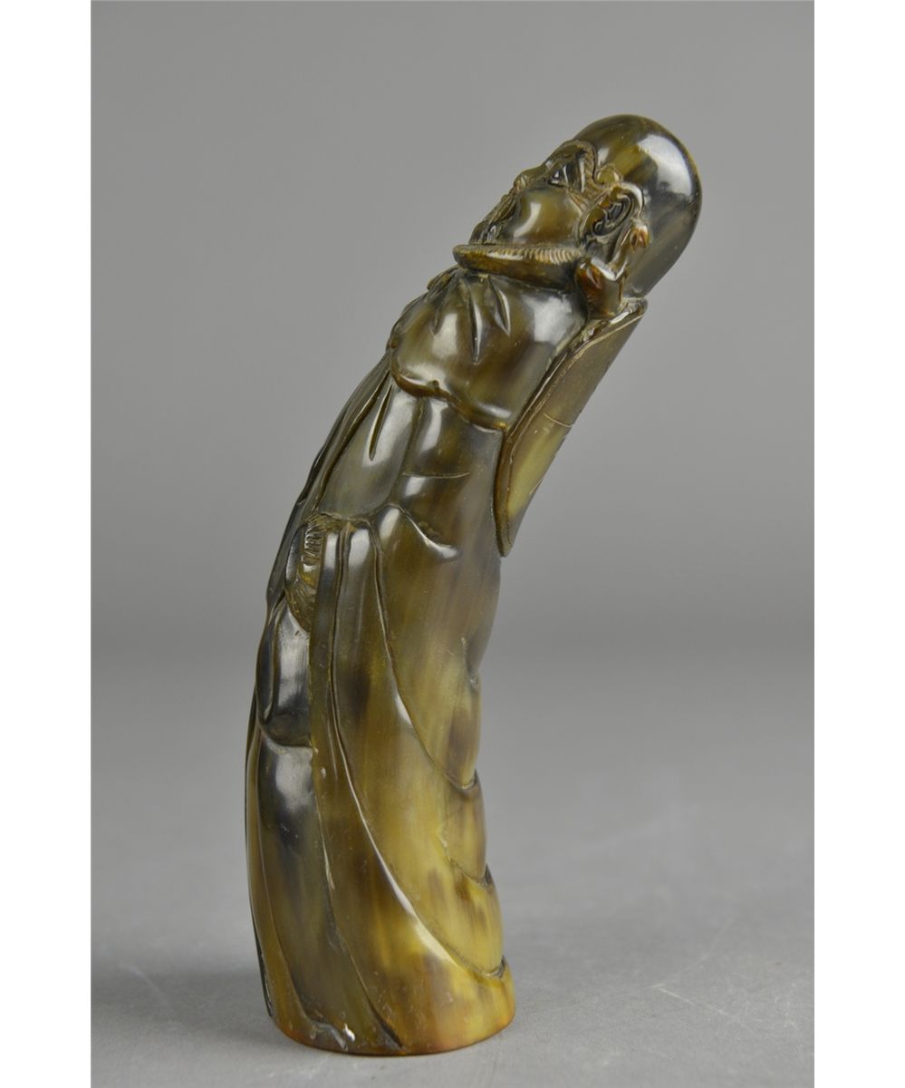 Chinese ox horn carved figure; featuring Immortal; H: 18.5 cm, 329 grams