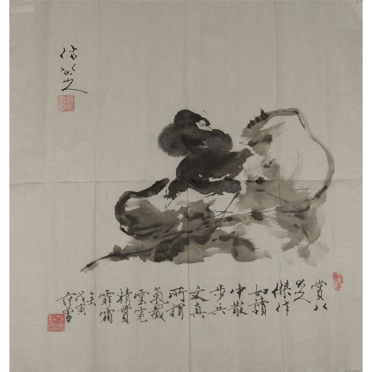 Birds in nest, Chinese ink painting on paper, signed Fan Zeng (1938-) with three red seals. 69 cm x 68 cm.
